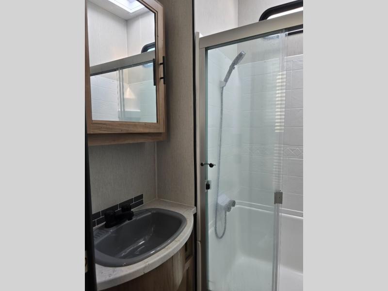 You're going to want to take a closer look at the Forest River Timberwolf destination trailer! These trailers have a backup camera system which will be extremely helpful as you maneuver these large units into the right spot. Some of the construction features include a seamless roofing membrane with heat reflectivity, a premium wheel package, power gear frame technology with space-saver rail design, and an armored underbelly tank enclosure. Use the USB charging stations to keep your phones ready to go, and stay in control of your trailer's electrical functions with the total control app and remote control system.
