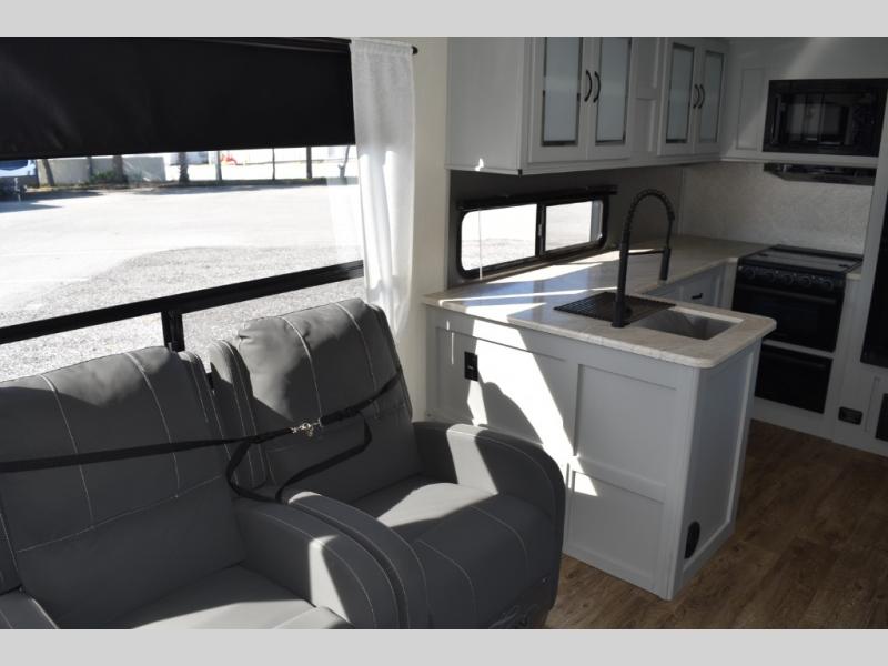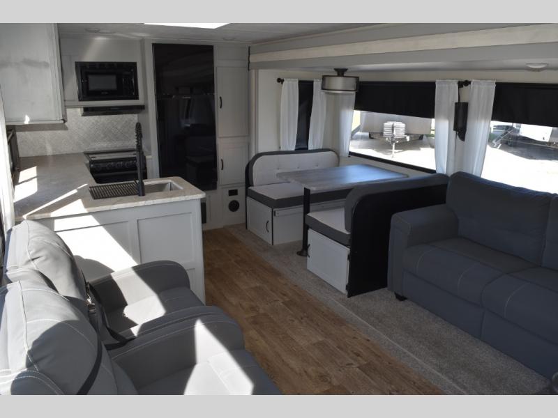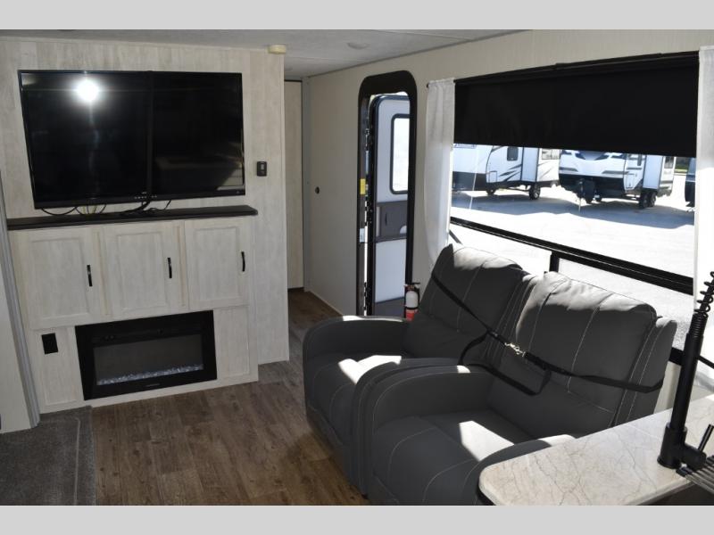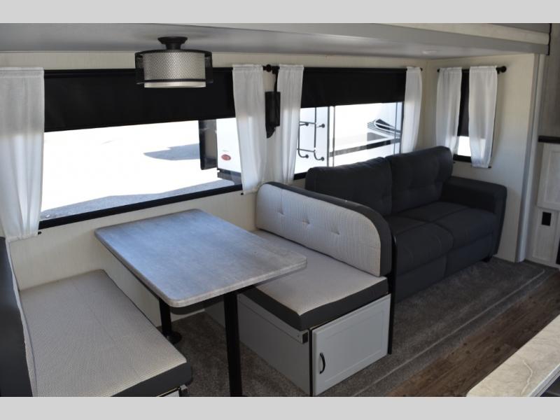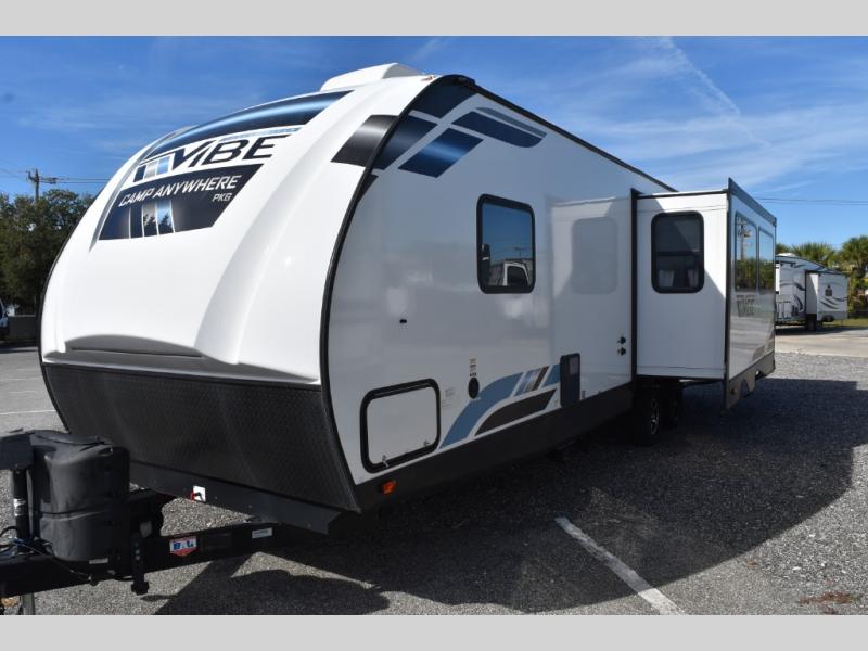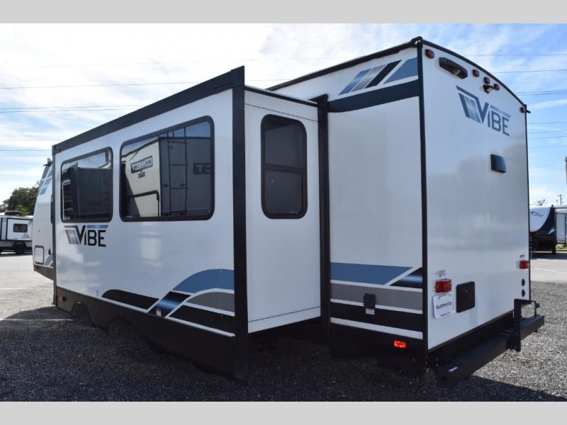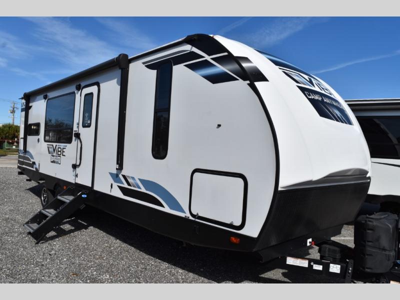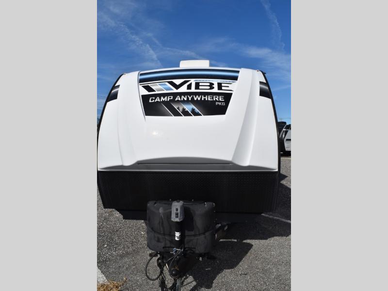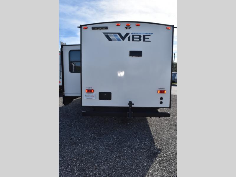 Each Vibe travel trailer by Forest River includes Hyper Lyte construction and a durable laminated "Aluma Frame" for years of use. The heated and enclosed underbelly allows you to extend your camping season, and the LED-lit exterior speakers will keep the party going as you grill outdoors and visit with family. Inside, you'll find LED lights to keep everything bright and open, a Bluetooth stereo, roller shades for your privacy, and many more amenities per region. These models also include cable and satellite prep and a digital TV antenna with a booster so you can stay connected to the outside world if you choose. Make the easy choice and choose a Vibe travel trailer today!