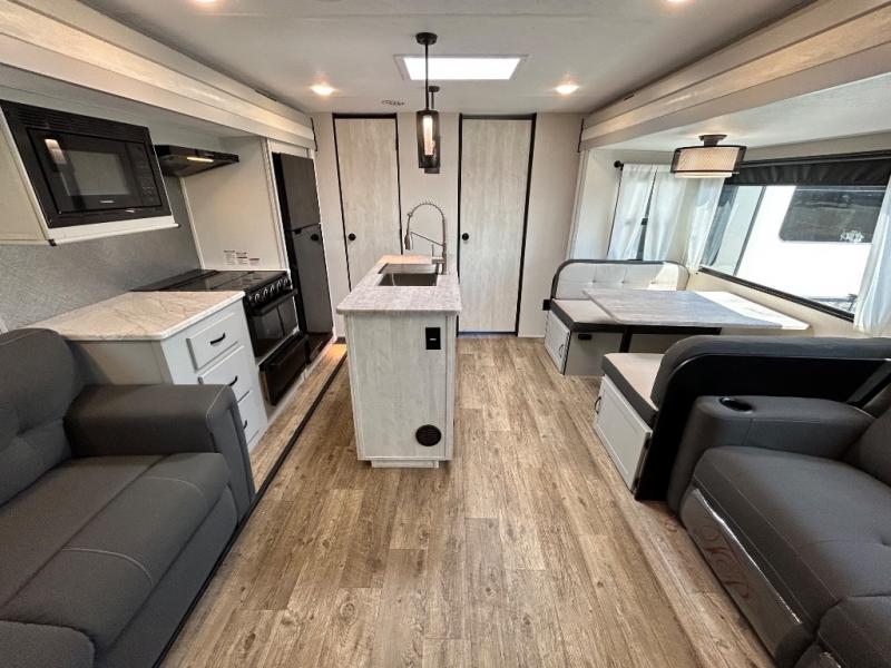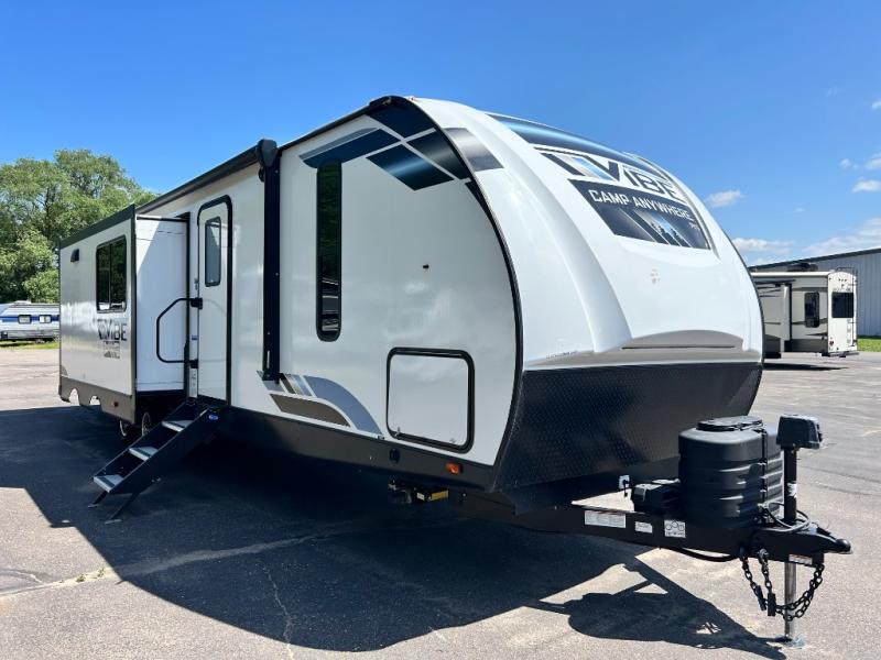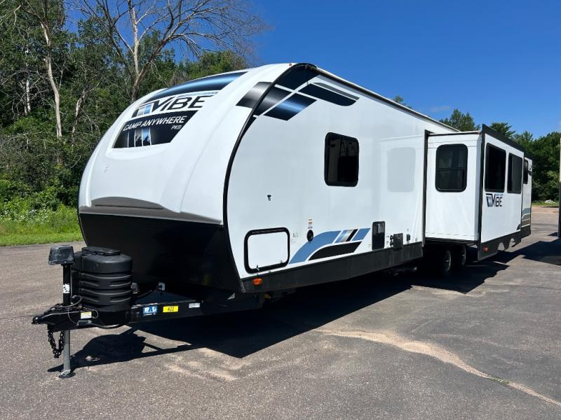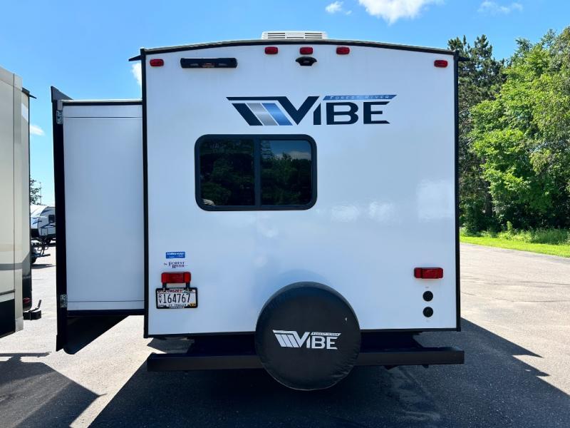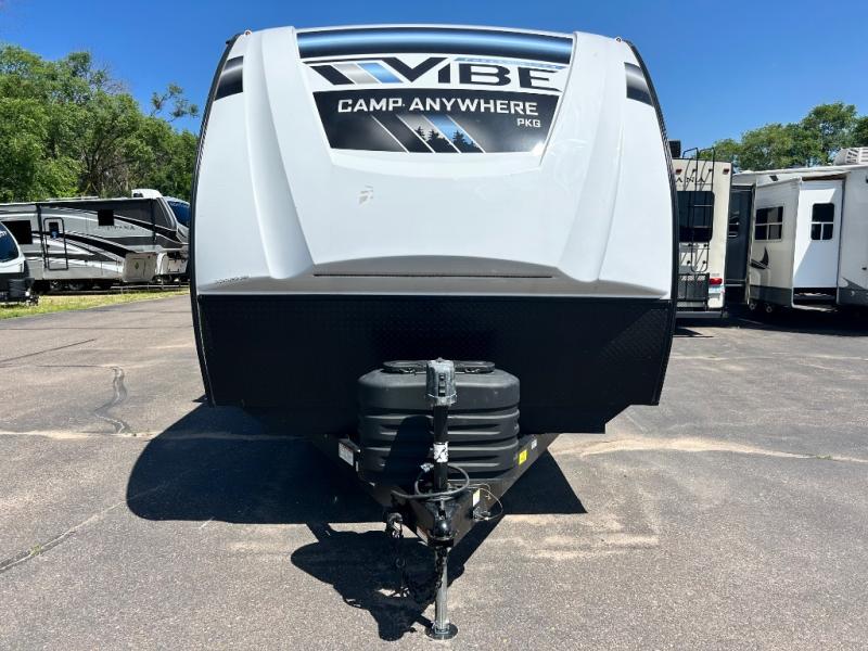 Each Vibe travel trailer by Forest River includes Hyper Lyte construction and a durable laminated "Aluma Frame" for years of use. The heated and enclosed underbelly allows you to extend your camping season, and the LED-lit exterior speakers will keep the party going as you grill outdoors and visit with family. Inside, you'll find LED lights to keep everything bright and open, a Bluetooth stereo, roller shades for your privacy, and many more amenities per region. These models also include cable and satellite prep and a digital TV antenna with a booster so you can stay connected to the outside world if you choose. Make the easy choice and choose a Vibe travel trailer today!