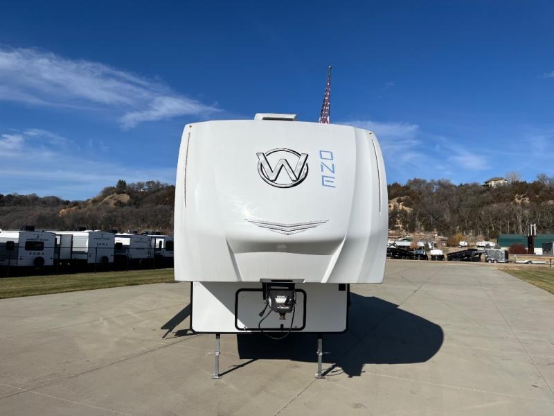 Wildcat ONE is a new fifth wheel from Forest River. With a variety of floorplans, these models are flexible enough to accommodate any group. Convenient design touches like "easy clean" floors with no vents, plenty of storage throughout, and a pull out step stool make getting away a breeze. A tankless water heater means showering will be easy, and you'll always be comfortable with the 35,000 BTU furnace and the 13,500 air conditioner. There's even an option to add additional air conditioning units.