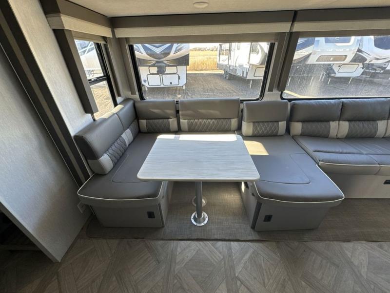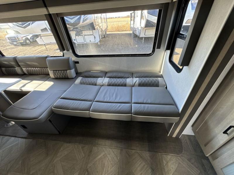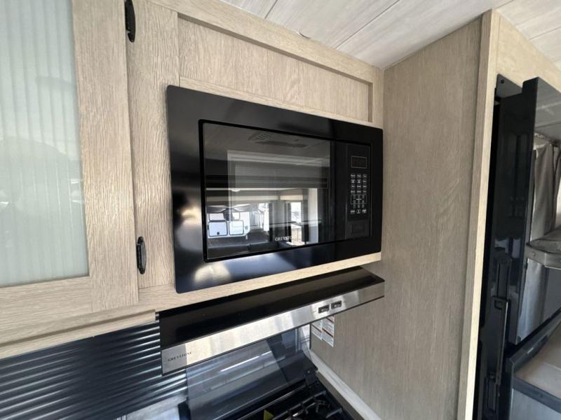 The perfect unit for your larger family to enjoy camping together, or for those that enjoy taking along extended family and/or friends. You will find plenty of space in this large single slide bunk model with stacked double beds in the rear corner next to an opposite rear corner bathroom for convenience. The slide offers a bit more floor space when everyone is inside relaxing. A private front bedroom offers a quiet retreat for two with bedside wardrobes and an overhead shelf for your things, plus there is a large pass-through storage compartment for all of your outdoor camping gear as well. The 16' awning is great for providing an outdoor living space to enjoy, and when indoors the panoramic windows in the main slide will make you feel like you've brought a little outdoors inside with you!