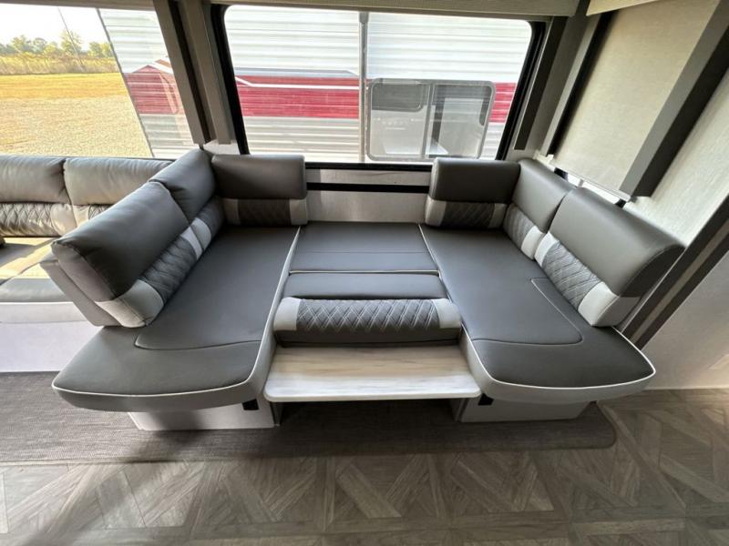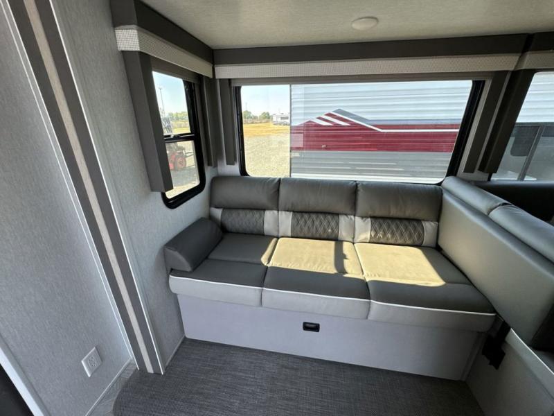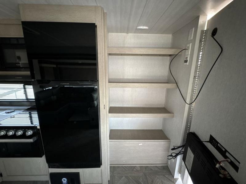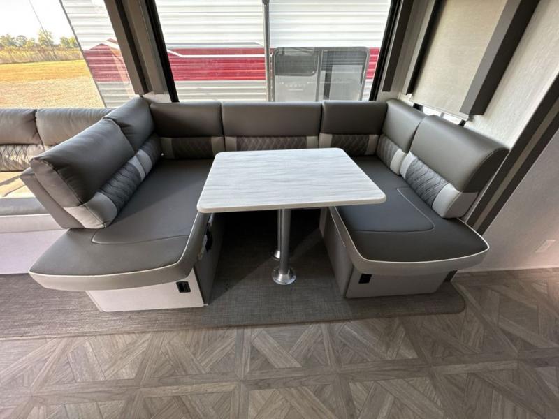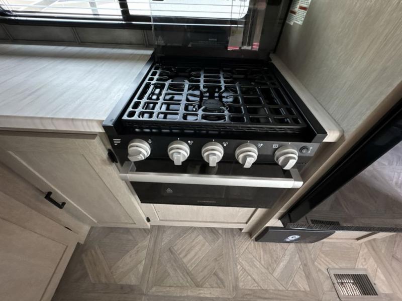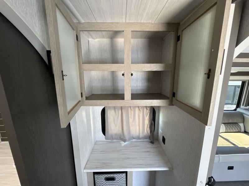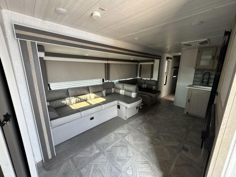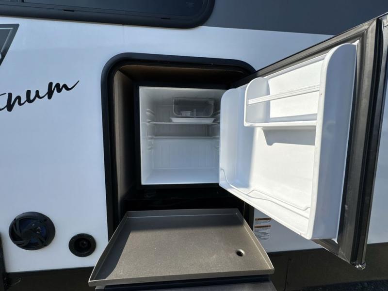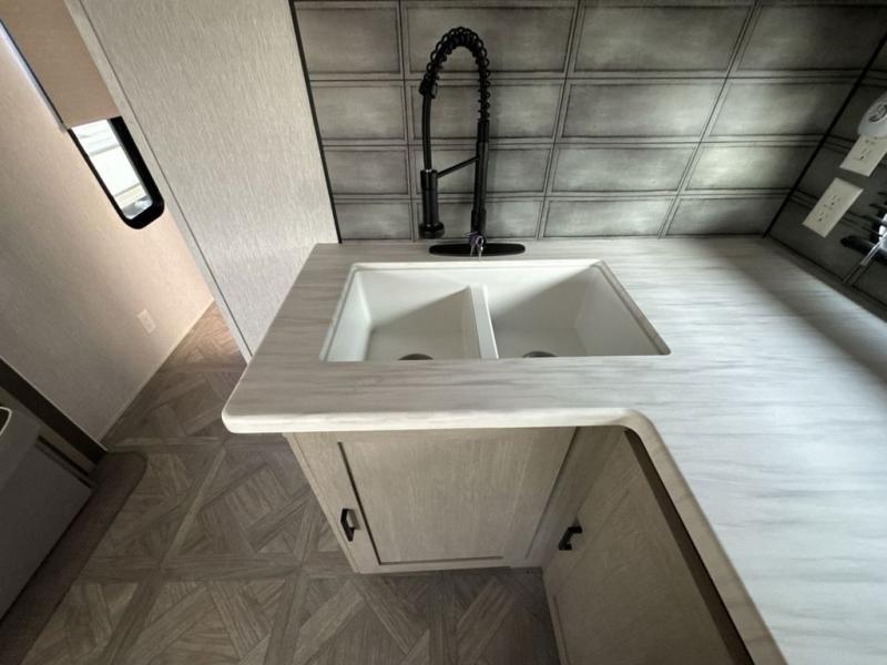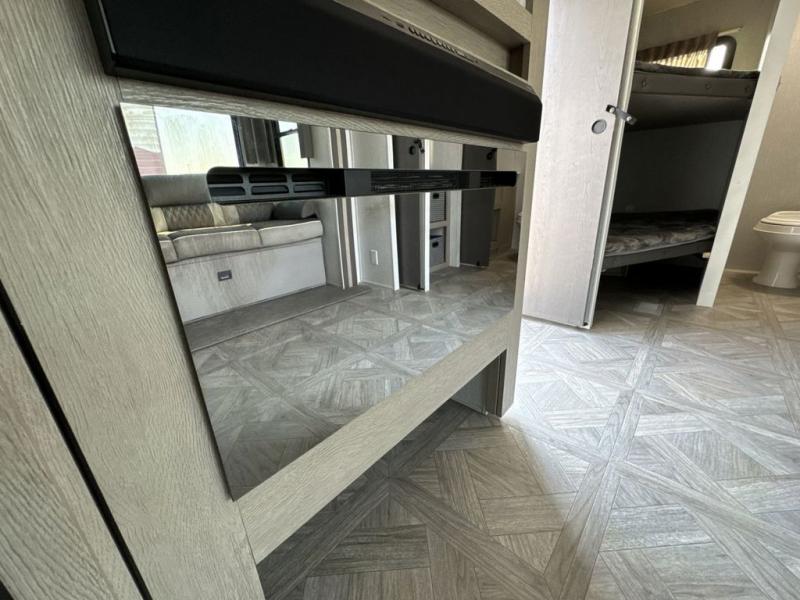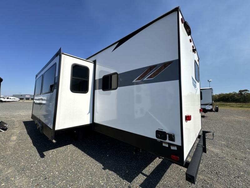 When you're ready to upgrade your RV to a unit with more sleeping space and comfort, choose this Wildwood travel trailer, and you'll never look back. After setting up camp, put out the large slide and prepare lunch indoors or outside at the outdoor kitchen, and the 20' power awning will shade you from the sun. The kids will find all their snacks in the hidden pantry behind the entertainment center, and their drinks in the oversized fridge. The U-shaped dinette is a part of the Versa Lounge, and it will provide comfortable seating space. This model features a rear private bunkhouse with a set of double bed bunks, a desk and a half bath. You will also love the front private bedroom that includes a custom king bed and dual bedside closets with nightstands below.
