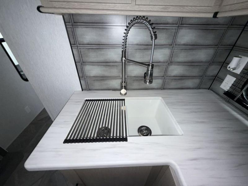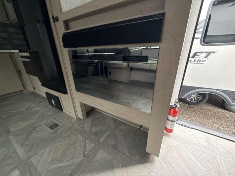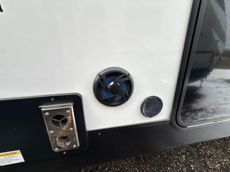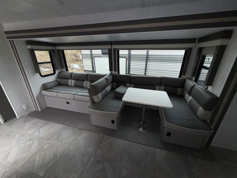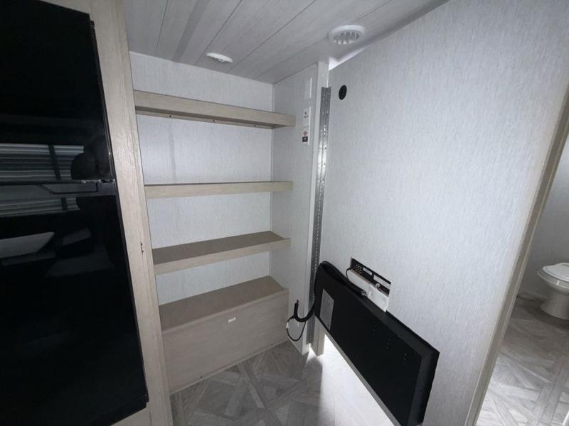 When you're ready to upgrade your RV to a unit with more sleeping space and comfort, choose this Wildwood travel trailer, and you'll never look back. After setting up camp, put out the large slide and prepare lunch indoors or outside at the outdoor kitchen, and the 20' power awning will shade you from the sun. The kids will find all their snacks in the hidden pantry behind the entertainment center, and their drinks in the oversized fridge. The U-shaped dinette is a part of the Versa Lounge, and it will provide comfortable seating space. This model features a rear private bunkhouse with a set of double bed bunks, a desk and a half bath. You will also love the front private bedroom that includes a custom king bed and dual bedside closets with nightstands below.