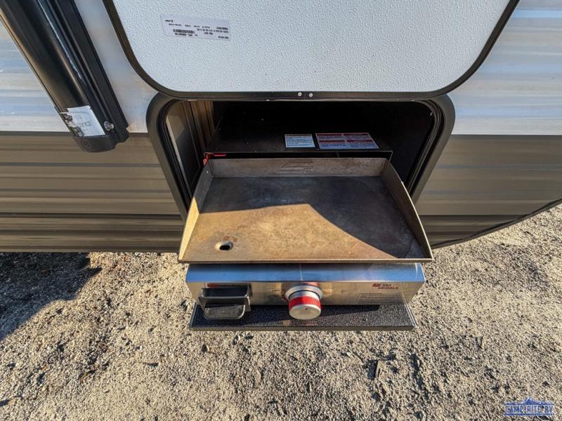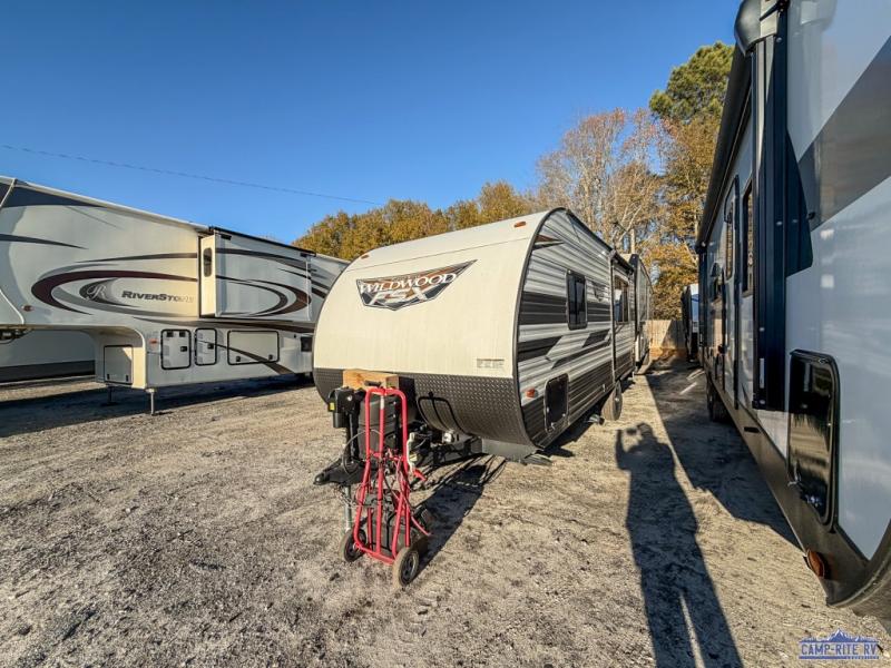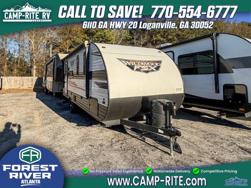 The Forest River Wildwood FSX travel trailer and toy haulers are easy to tow and easy to love, so come take a look! With each model you'll appreciate the 20K BTU furnace and 13,500 BTU A/C to keep you comfortable year around, and the large windows will make the whole unit seem bright and open. The EZ entrance includes an XL folding grab assist handle, and the power awning with LED lights provide an outdoor living space you are sure to love. The lightweight Wildwood FSX travel trailers and toy haulers are your ticket to the great outdoors. Choose yours today!