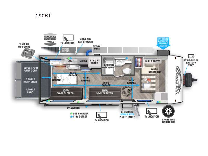 Forest River Wildwood FSX toy hauler 190RT highlights: