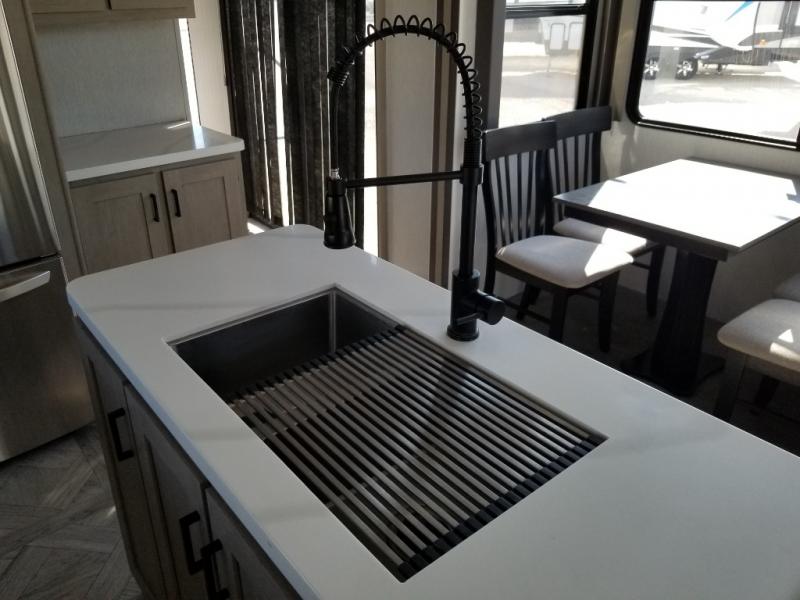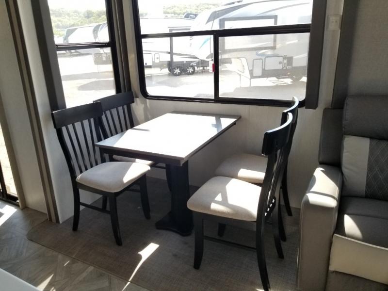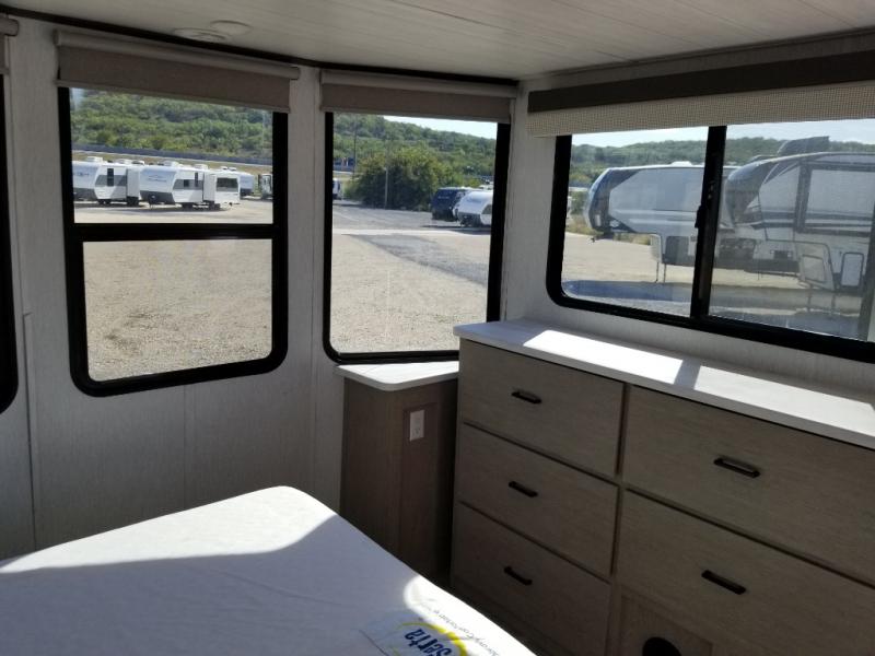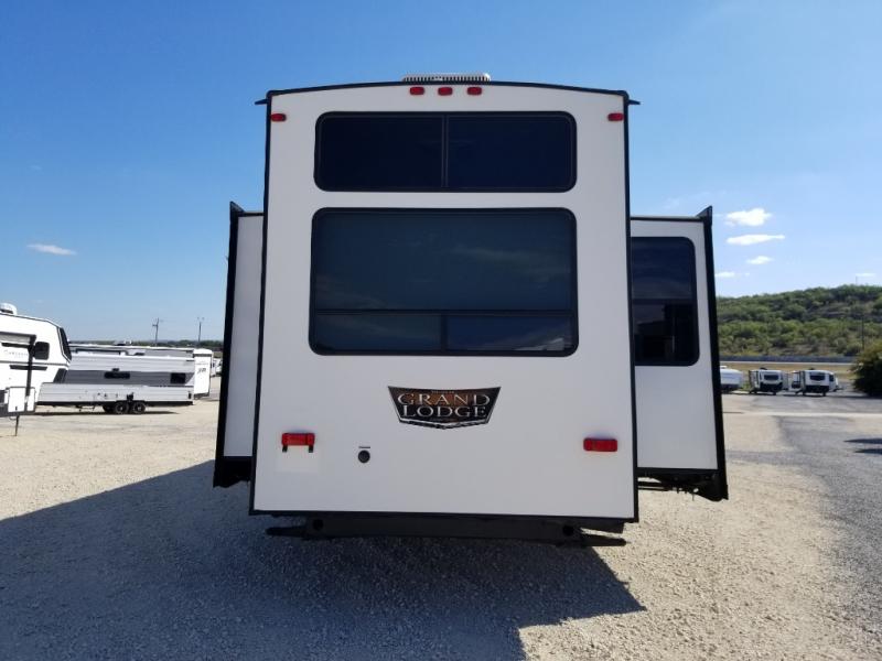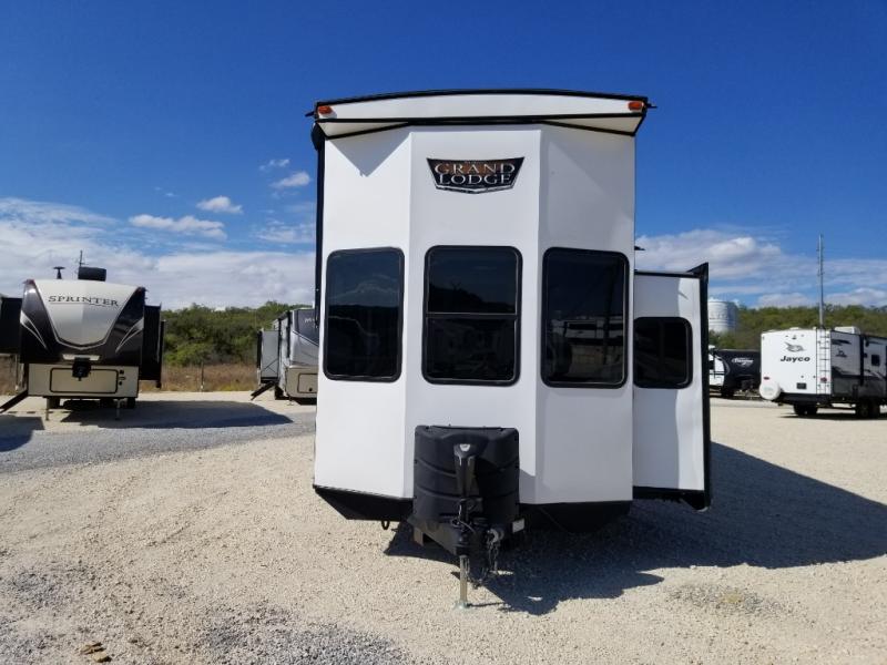 You will experience a home away from home with any one of these Forest River Wildwood Grand Lodge destination trailers! Their construction consists of a 12" forged I-beam frame, a cambered chassis, and plywood floor decking, as well as 5" bowed truss roof rafters, 3/8" roof decking, and color coded water lines to make life easier. The one-piece, seamless slides and 106" interior living room height makes for more walking around space. A Best in Class Value package includes upgraded designer furniture, a central vacuum with sweep attachment, and stainless steel kitchen appliances. Plus, it has a heated and enclosed Accessi-Belly with removable panels and an exterior LED light strip under the awning. Come choose your favorite model today!