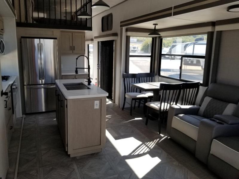 Double Loft, Skylight, Kitchen Island, Patio Doors, & Theater Seats!Forest River Wildwood Grand Lodge destination trailer 42DL highlights: