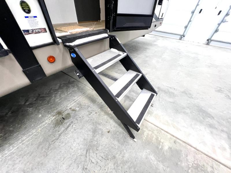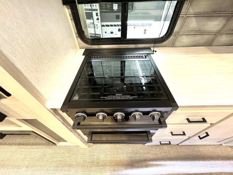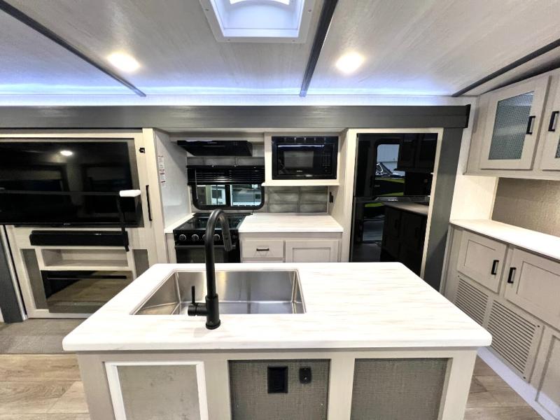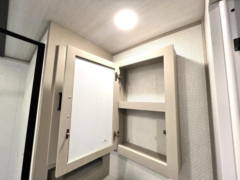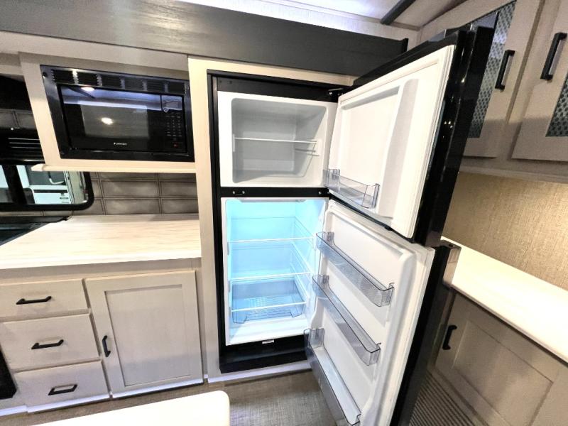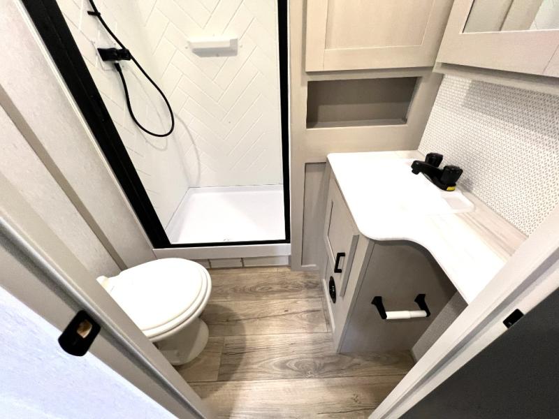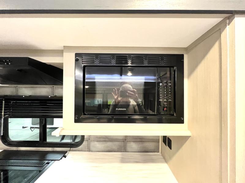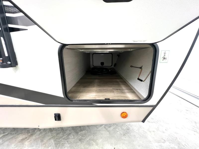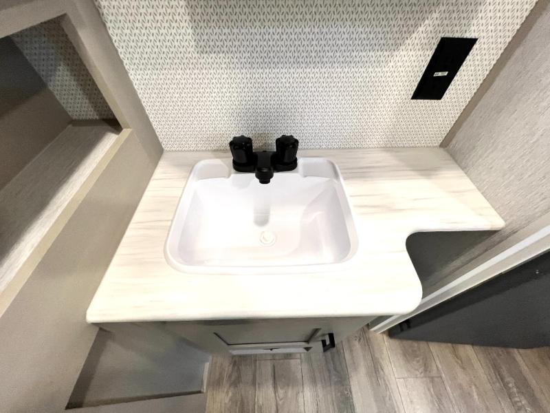 With any Wildwood Heritage Glen travel trailer and fifth wheel by Forest River, the quality construction, attention to detail and design along with a bright and welcoming interior allows you to relax in comfort with conveniences while exploring outdoors. The European Oak colored horizontal plank linoleum flooring is unique, beautiful and durable, and the Saddle colored wood cabinetry with matte black cabinet hardware on the cabinet doors is stylish and beautiful. The heated and enclosed underbelly plus 12V heat pads will help protect your unit from the elements. More features that provide convenience include the power stabilizer jacks, the extra large pass-through storage, and the central switch center plus the back-up camera prep and roof mounted solar panel prep give you choices. There are many more features included whether you choose a travel trailer or fifth wheel!