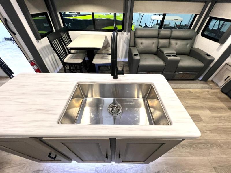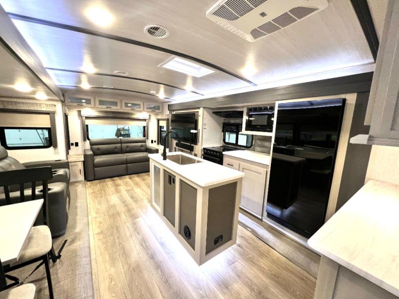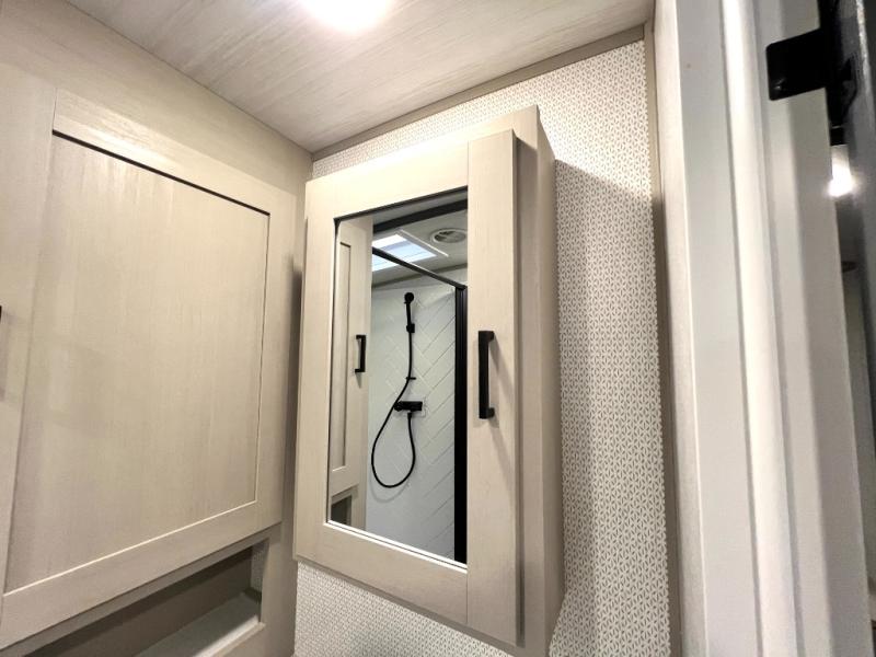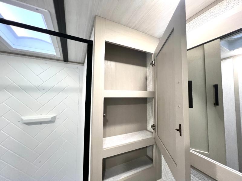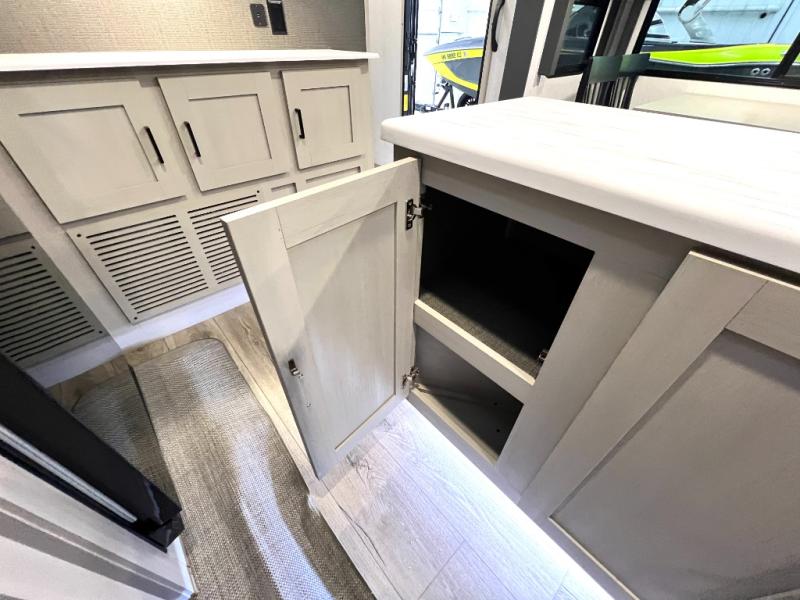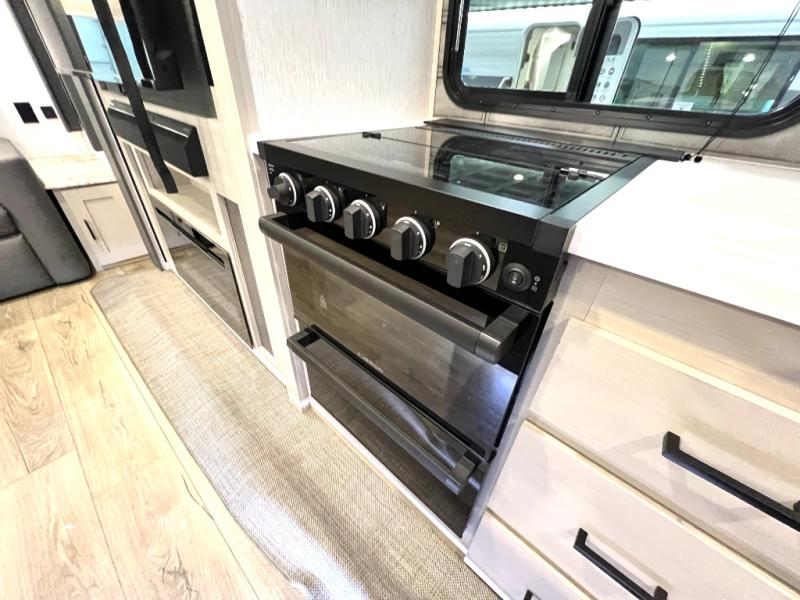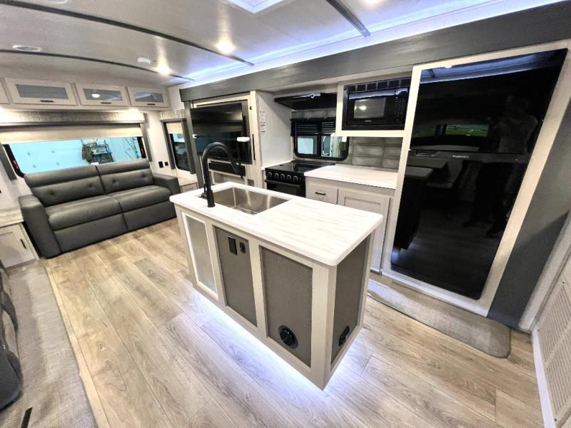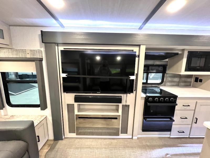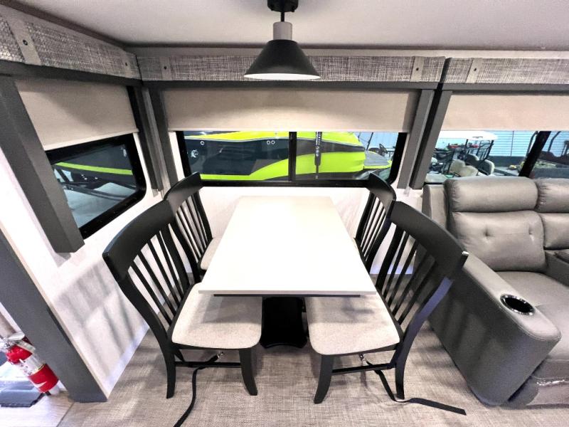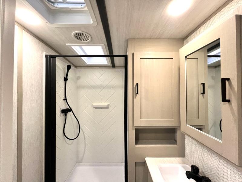 With any Wildwood Heritage Glen travel trailer and fifth wheel by Forest River, the quality construction, attention to detail and design along with a bright and welcoming interior allows you to relax in comfort with conveniences while exploring outdoors. The European Oak colored horizontal plank linoleum flooring is unique, beautiful and durable, and the Saddle colored wood cabinetry with matte black cabinet hardware on the cabinet doors is stylish and beautiful. The heated and enclosed underbelly plus 12V heat pads will help protect your unit from the elements. More features that provide convenience include the power stabilizer jacks, the extra large pass-through storage, and the central switch center plus the back-up camera prep and roof mounted solar panel prep give you choices. There are many more features included whether you choose a travel trailer or fifth wheel!