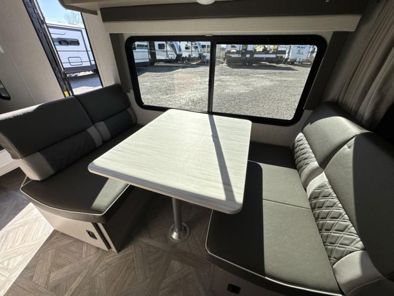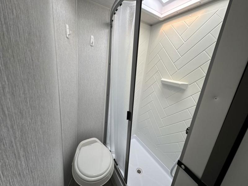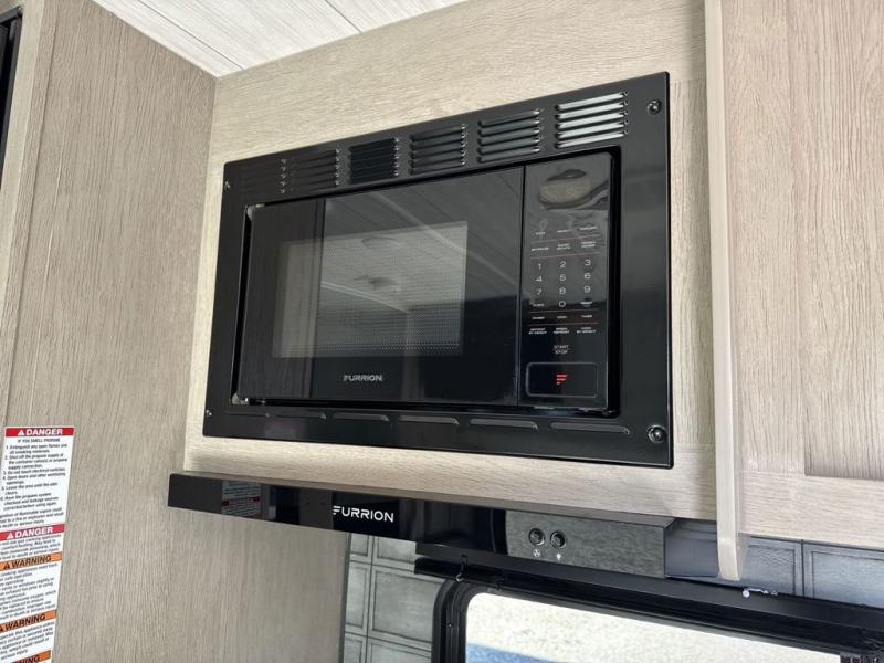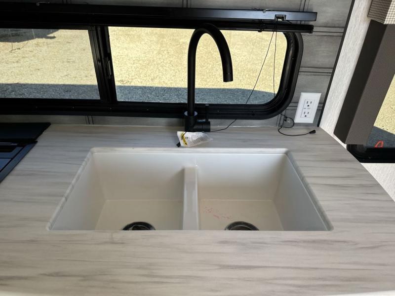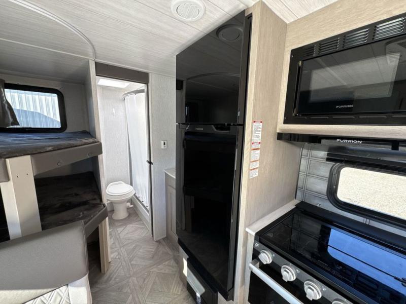 This Wildwood X-Lite travel trailer is packed with features! There is a walk-around custom king bed up at the front that can be sectioned off from the rest of the trailer with a privacy curtain, and the double-size bunks in the back of this trailer will provide you with a compact sleeping space for your little ones. The booth dinette is going to be a great place to sit down together and have a meal when the bugs are too bad outside to sit at the picnic table, and there is also a sofa for relaxation while inside. You will also appreciate the look and function of the seamless countertops in the kitchen, and the 11-cubic foot refrigerator will easily keep your perishable items fresh. There is also an outside camp kitchen option for more choices when cooking for the family.