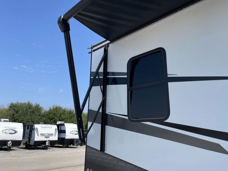 With the XLR Hyper Lite toy hauler travel trailer by Forest River, there is a wider interior with a 74" width even when the slides are retracted in so you can enjoy modern decor, at-home amenities and custom styling. The garages are spacious and include 5,000 lb. cargo tie downs that are anchored to steel plates, an insulated floor, a black rear privacy screen, a ramp patio cable kit for outdoor fun above ground, and Alumi-tread rear entry steps to mention a few highlights. More standout features include MORryde CRE3000 premium suspension that smooths out even the toughest of roads, heavy-duty Dexter axles offering the best in class carrying capacities, and the XLR fully enclosed "Body Armor" underbelly that is insulated and uses a panel system for ease of access. So when you want to play hard, choose an XLR Hyper Lite that offers upgraded features, quality construction, and allows you the control of venturing on or off road!