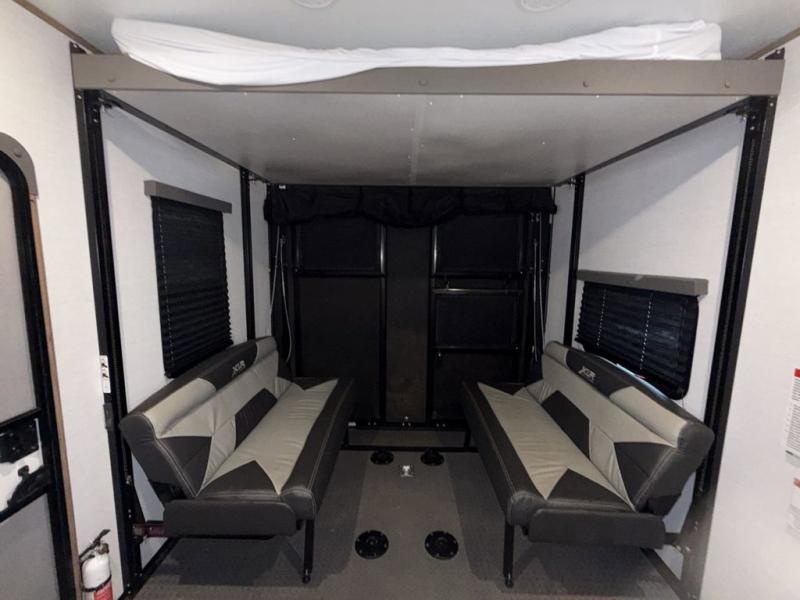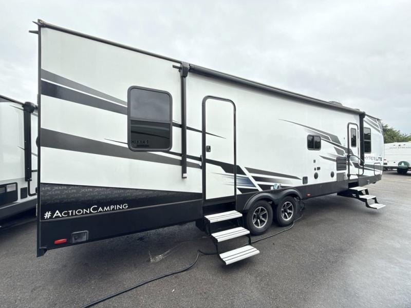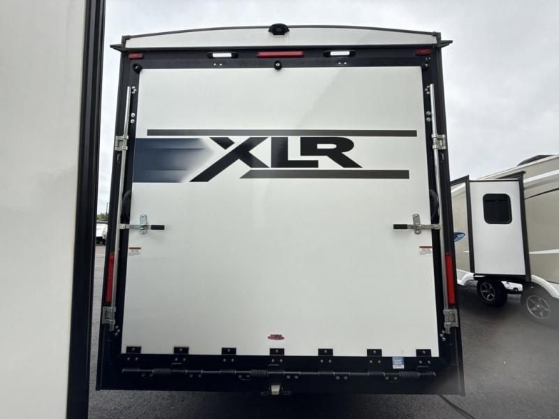 With the XLR Hyper Lite toy hauler travel trailer by Forest River, there is a wider interior with a 74" width even when the slides are retracted in so you can enjoy modern decor, at-home amenities and custom styling. The garages are spacious and include 5,000 lb. cargo tie downs that are anchored to steel plates, an insulated floor, a black rear privacy screen, a ramp patio cable kit for outdoor fun above ground, and Alumi-tread rear entry steps to mention a few highlights. More standout features include MORryde CRE3000 premium suspension that smooths out even the toughest of roads, heavy-duty Dexter axles offering the best in class carrying capacities, and the XLR fully enclosed "Body Armor" underbelly that is insulated and uses a panel system for ease of access. So when you want to play hard, choose an XLR Hyper Lite that offers upgraded features, quality construction, and allows you the control of venturing on or off road!