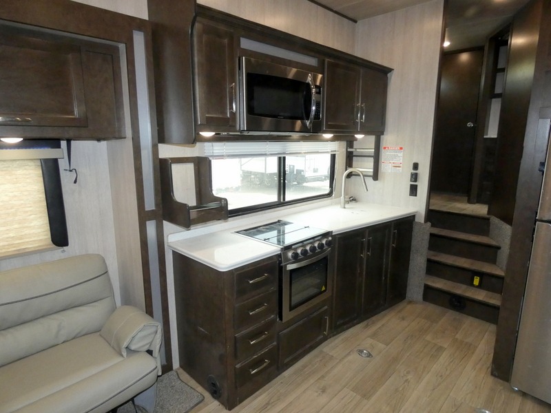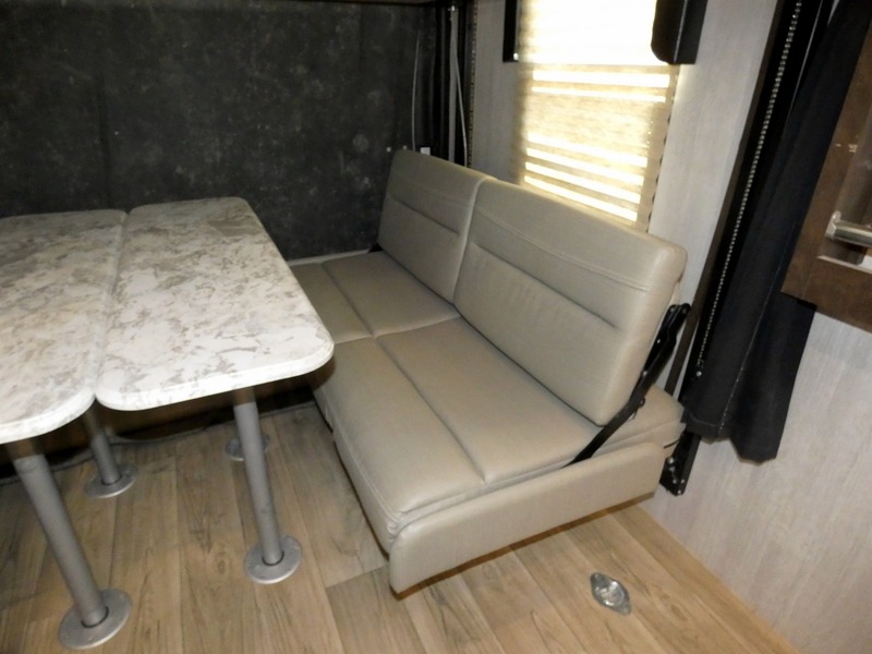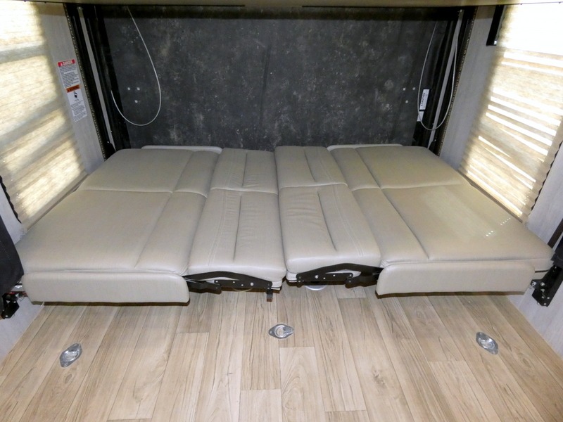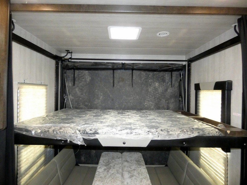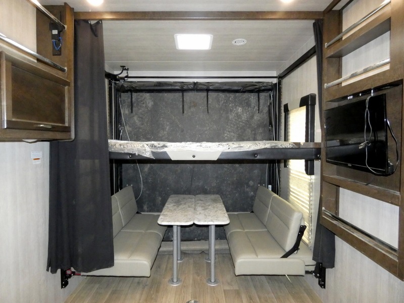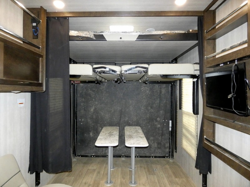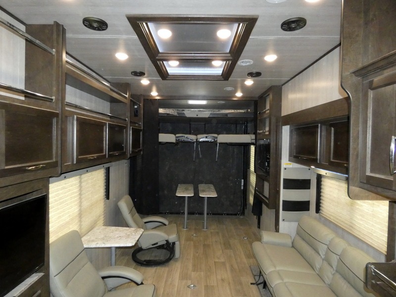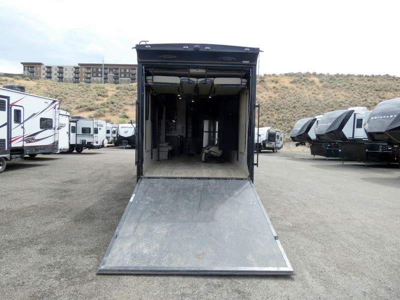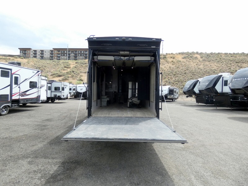 From all the standard features such as the bedroom pillowtop queen-size bed and the power queen bunk in the cargo area, you and your family will be able to sleep easily after a fun day on the trails with your off-road toys. The fuel station will keep the toys up and running, and the 8 cu. ft. refrigerator plus the pantry will have your beverages and snacks ready when you decide to relax on the opposing sofas with tables in between them. The cook will enjoy the appliances to make warm meals, and the sink to keep everything clean.