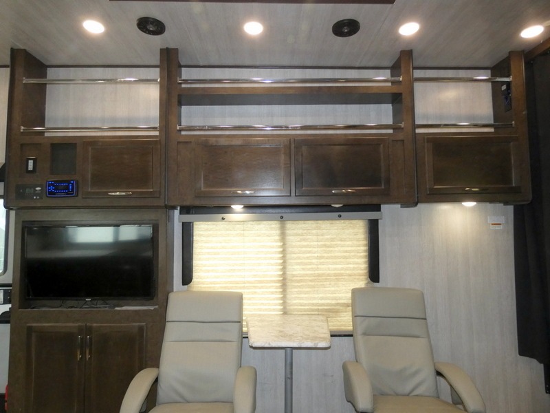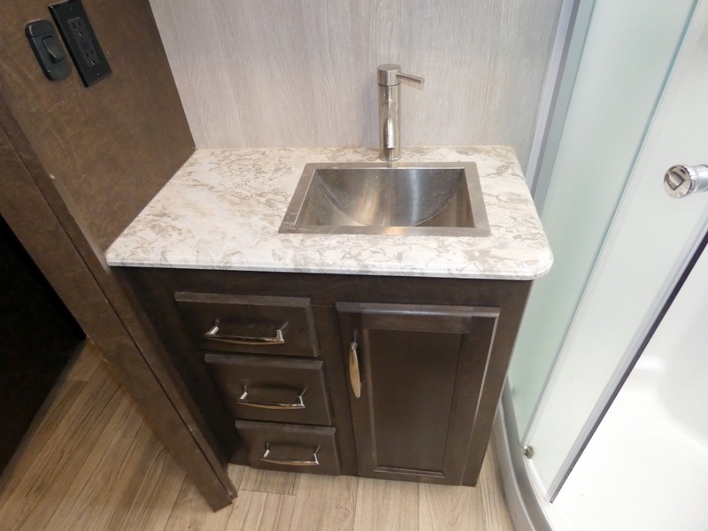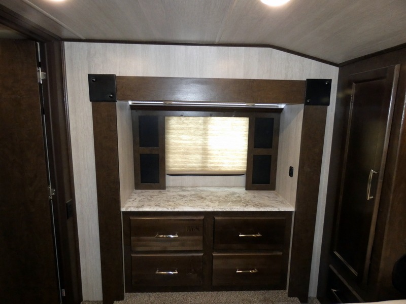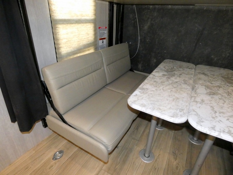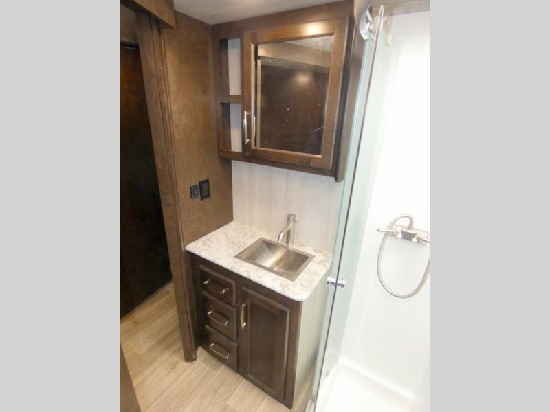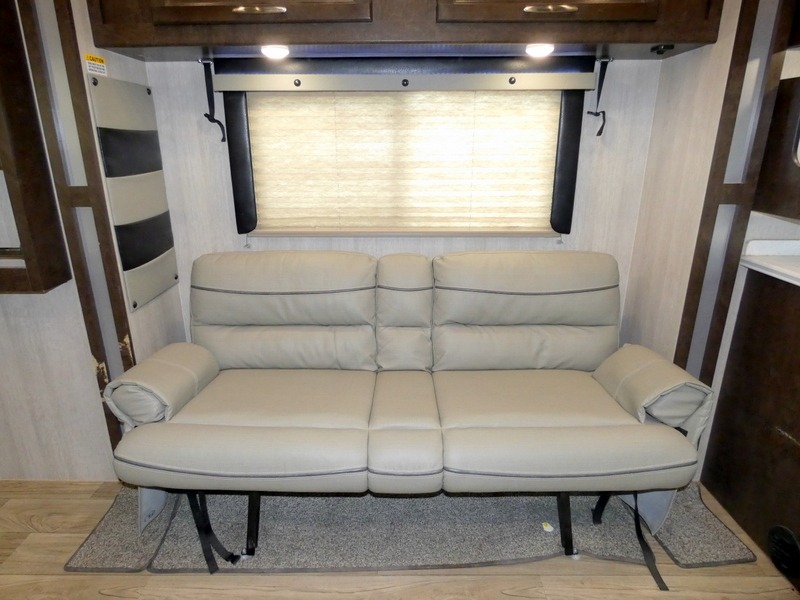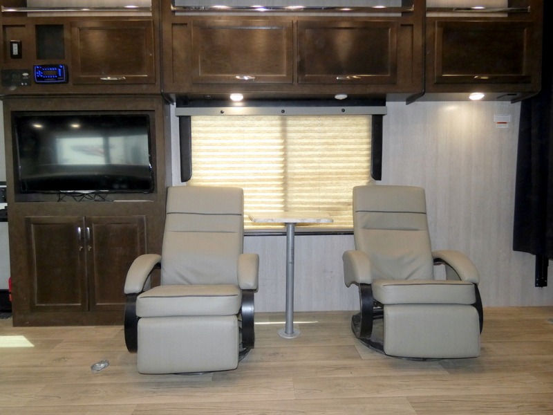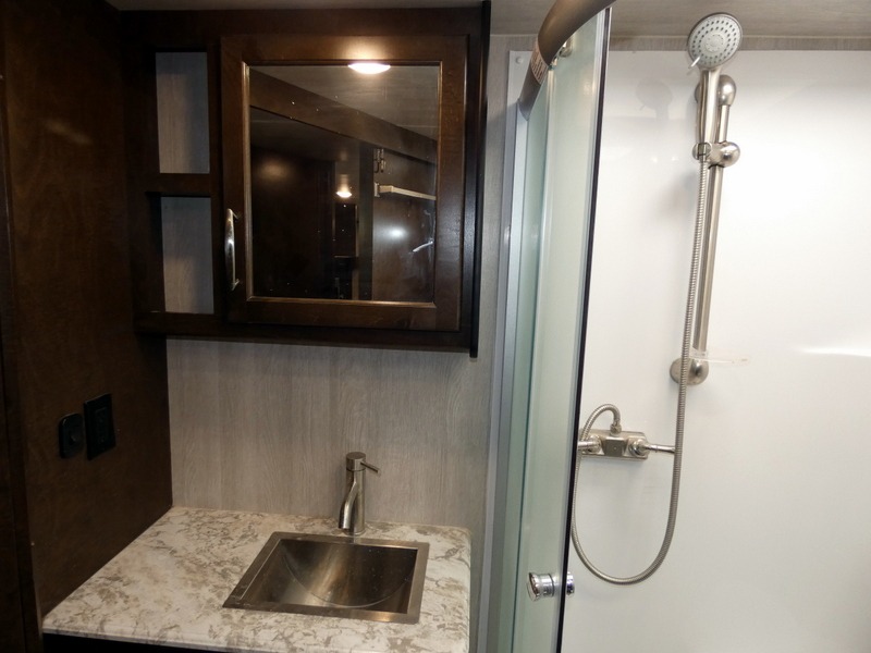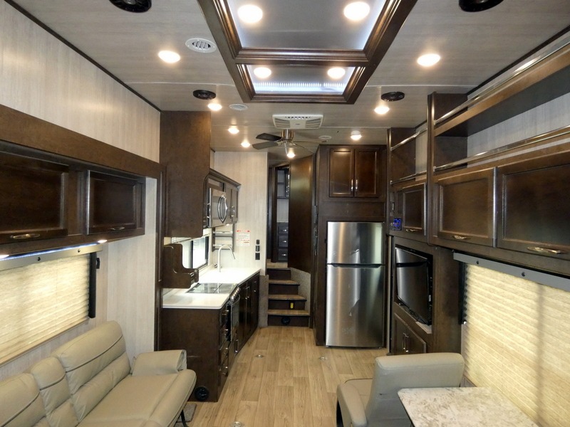 From all the standard features such as the bedroom pillowtop queen-size bed and the power queen bunk in the cargo area, you and your family will be able to sleep easily after a fun day on the trails with your off-road toys. The fuel station will keep the toys up and running, and the 8 cu. ft. refrigerator plus the pantry will have your beverages and snacks ready when you decide to relax on the opposing sofas with tables in between them. The cook will enjoy the appliances to make warm meals, and the sink to keep everything clean.