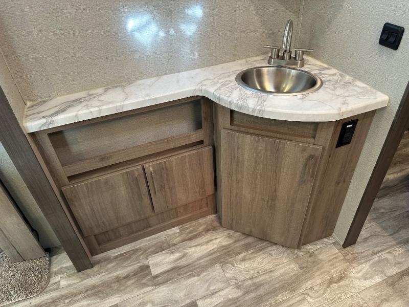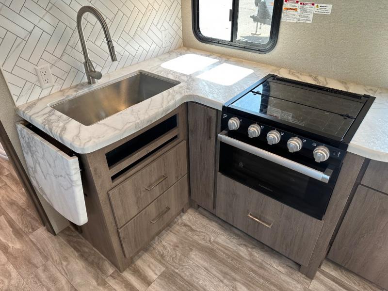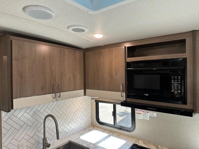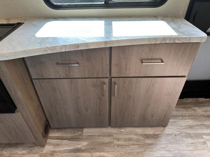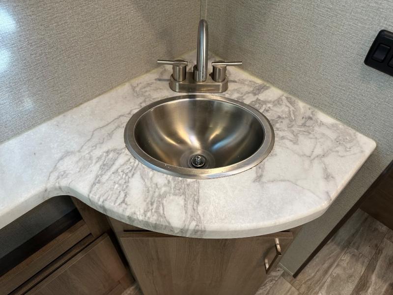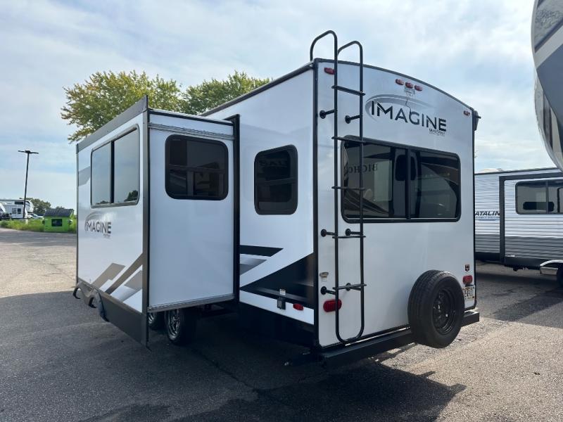 You will have an amazing amount of fun in this Imagine travel trailer! There is a tri-fold sofa and U-shaped dinette with removable ottoman that you can relax on while you watch the LED HDTV, and this trailer has two entry doors so that you can come and go as you please. The private bedroom contains the second entry door, so you can quickly head inside to grab a sweatshirt when you need one. While you're outside, you'll have a 21' power awning to protect you, and there is an exterior coax TV hookup, LP quick connect, and spray port to make your camping life easier. The interior walk-through bathroom connects the bedroom to the rest of the trailer, and the kitchen has a countertop extension so that you can chop veggies on extra counter space.