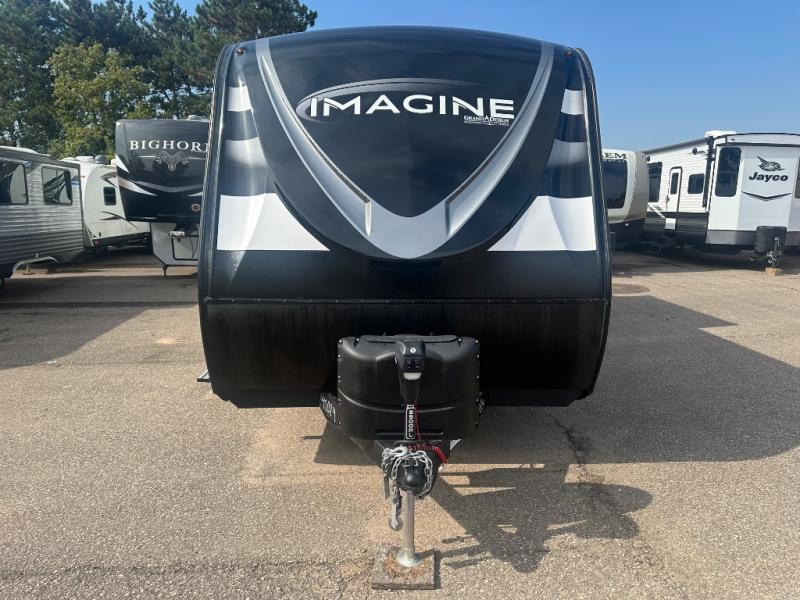 Just imagine leaving the world behind and secluding yourself away with your favorite people in your Grand Design Imagine travel trailer! The Imagine has been designed to enjoy extended season camping and includes a high-capacity furnace, a heated and enclosed underbelly with suspended tanks, a designated heat duct to the subfloor, and a high-density roof insulation with attic vent. You'll have maximum head room on the interior with 81" radius ceilings, and large panoramic windows to let in natural lighting. The exclusive drop-frame pass-through storage compartment is going to allow you to bring along lots of equipment, and the universal docking station is an all-in-one location for utilities and hook-ups. You'll also have industry-leading tank capacities so that you can fill and empty your tanks less often.