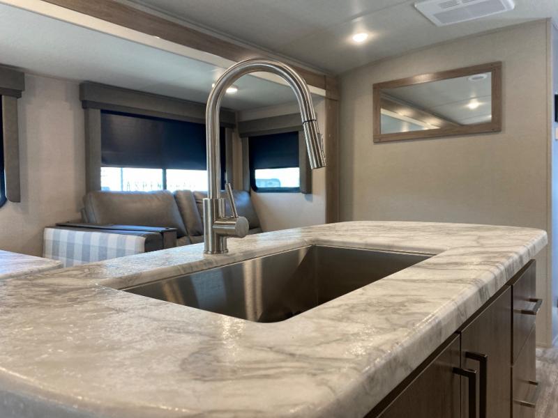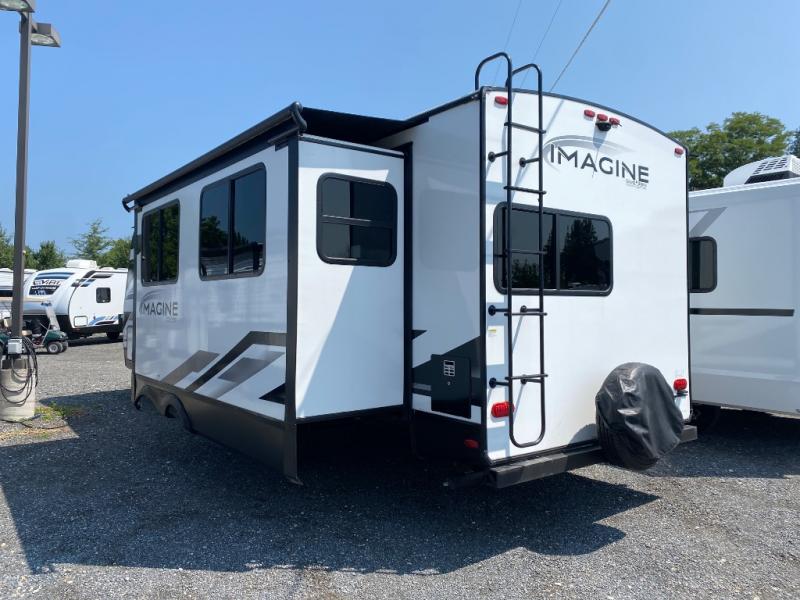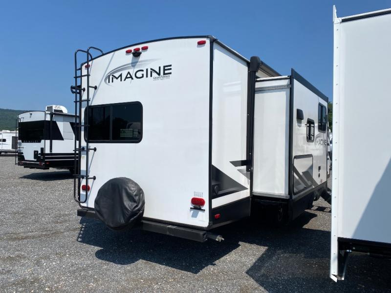 Just imagine leaving the world behind and secluding yourself away with your favorite people in your Grand Design Imagine travel trailer! The Imagine has been designed to enjoy extended season camping and includes a high-capacity furnace, a heated and enclosed underbelly with suspended tanks, a designated heat duct to the subfloor, and a high-density roof insulation with attic vent. You'll have maximum head room on the interior with 81" radius ceilings, and large panoramic windows to let in natural lighting. The exclusive drop-frame pass-through storage compartment is going to allow you to bring along lots of equipment, and the universal docking station is an all-in-one location for utilities and hook-ups. You'll also have industry-leading tank capacities so that you can fill and empty your tanks less often.