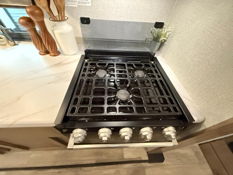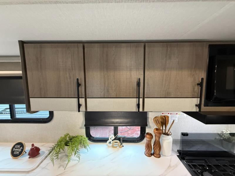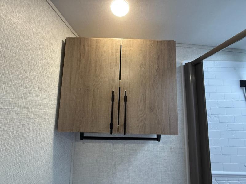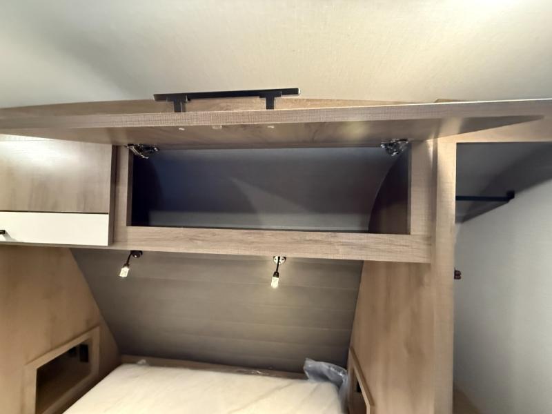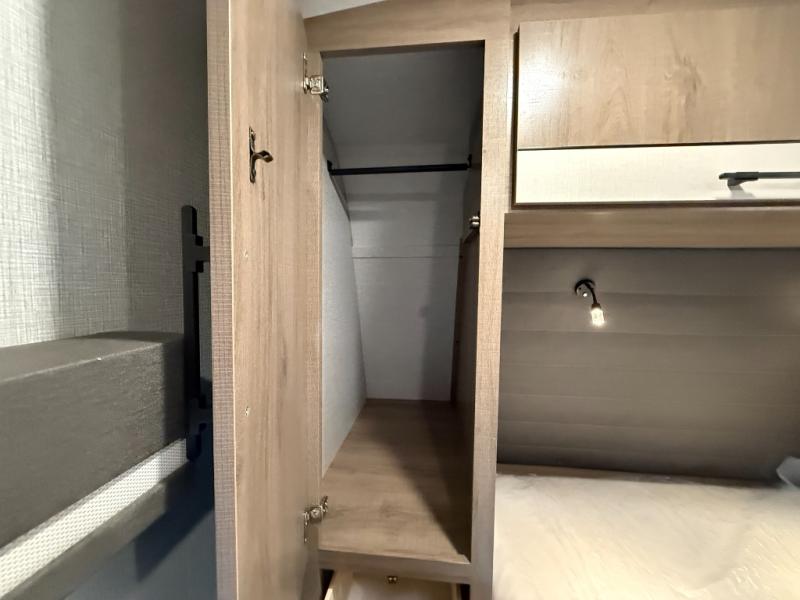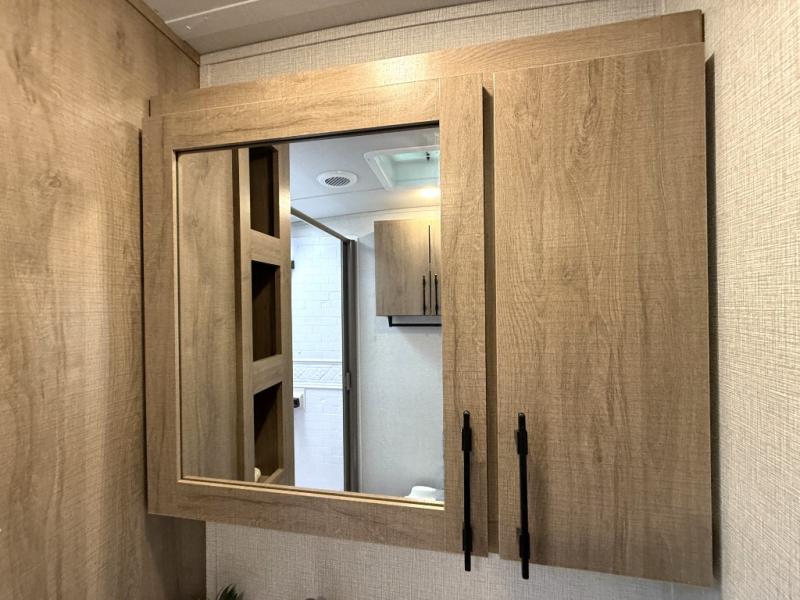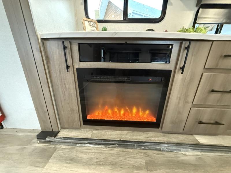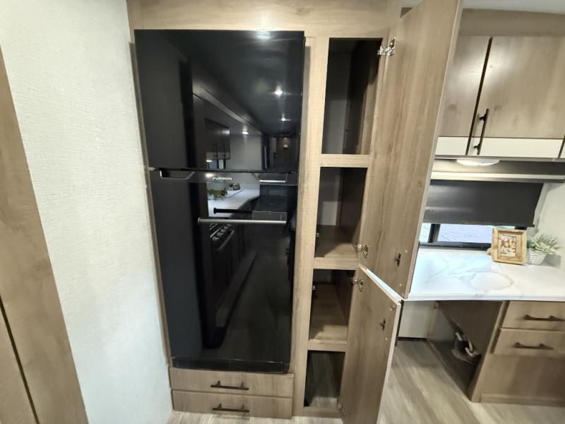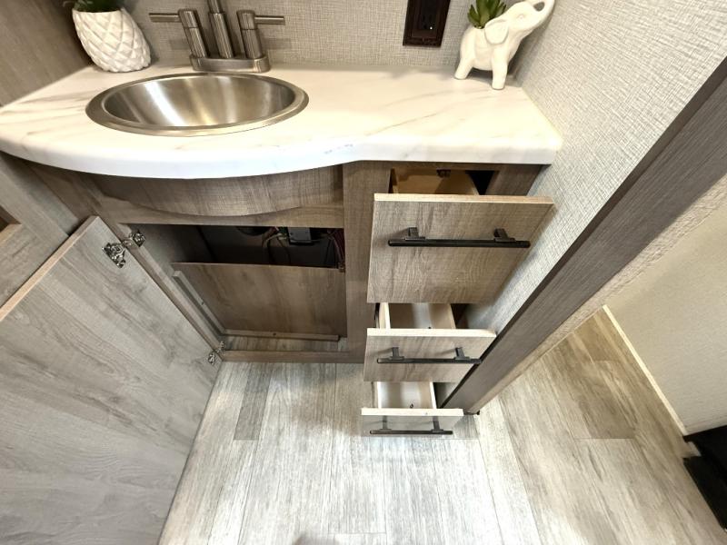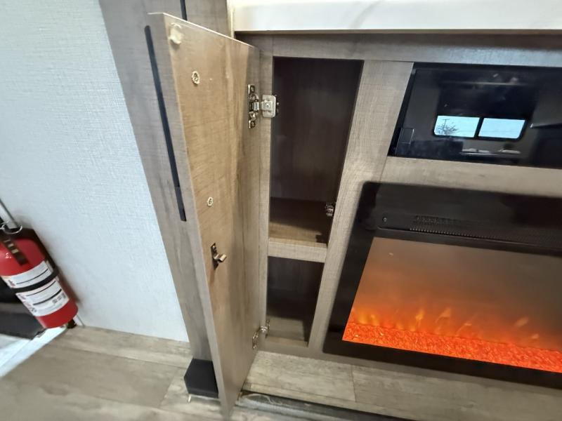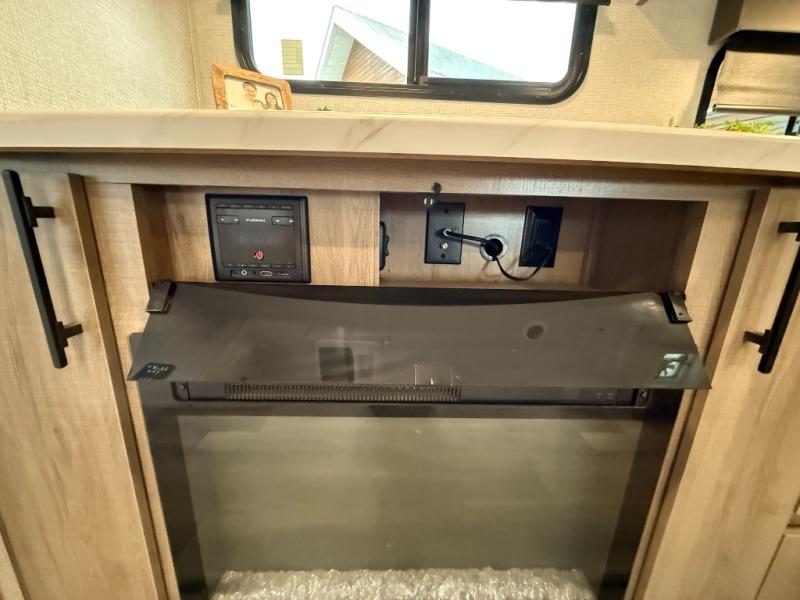 With this Imagine travel trailer, you can work while you're on the road because it offers you a desk in the main living area. You won't have to miss out on the action since you'll be right next to the booth dinette and tri-fold sofa, and there is even a pantry directly to the left of the desk for you to grab a quick snack while you're working. Once you're done with work, you can relax on the tri-fold sofa while you watch the telescoping 40" LED HDTV, and the private bedroom offers you a 60" x 80" queen bed to rest on when you're ready to call it a night.