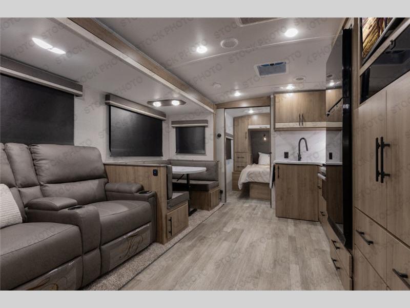 Just imagine leaving the world behind and secluding yourself away with your favorite people in your Grand Design Imagine travel trailer! The Imagine has been designed to enjoy extended season camping and includes a high-capacity furnace, a heated and enclosed underbelly with suspended tanks, a designated heat duct to the subfloor, and a high-density roof insulation with attic vent. You'll have maximum head room on the interior with 81" radius ceilings, and large panoramic windows to let in natural lighting. The exclusive drop-frame pass-through storage compartment is going to allow you to bring along lots of equipment, and the universal docking station is an all-in-one location for utilities and hook-ups. You'll also have industry-leading tank capacities so that you can fill and empty your tanks less often.