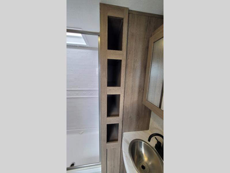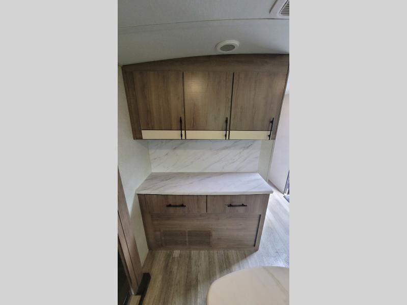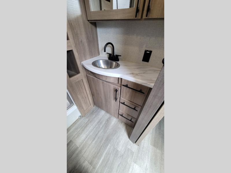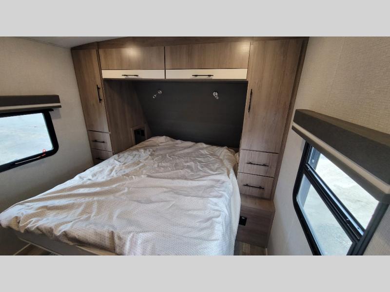 What I liked most: Rear living anywhere you look there is a great view out of the windows also dont have to twist my head around to see TV also no cabinet to hit my head on when brushing teeth.great warranty department easy to deal with just had small trim things that needed attention could of let them go but it was new.