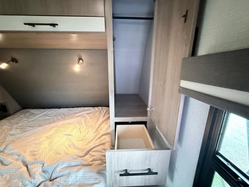 What I liked most: Rear living anywhere you look there is a great view out of the windows also dont have to twist my head around to see TV also no cabinet to hit my head on when brushing teeth.great warranty department easy to deal with just had small trim things that needed attention could of let them go but it was new.