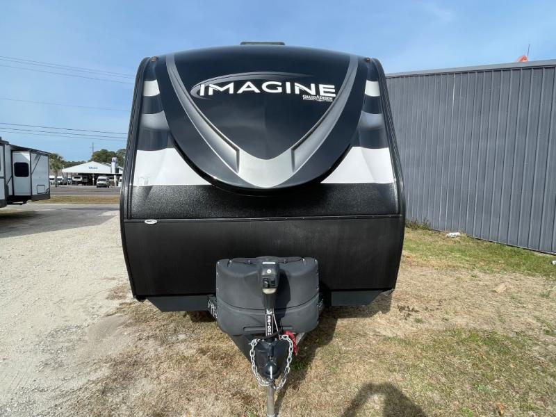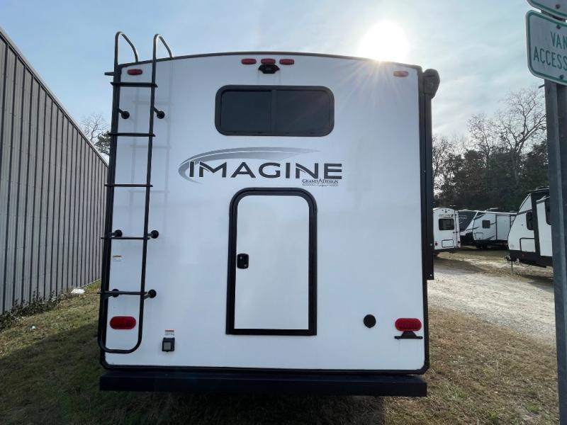 Just imagine leaving the world behind and secluding yourself away with your favorite people in your Grand Design Imagine travel trailer! The Imagine has been designed to enjoy extended season camping and includes a high-capacity furnace, a heated and enclosed underbelly with suspended tanks, a designated heat duct to the subfloor, and a high-density roof insulation with attic vent. You'll have maximum head room on the interior with 81" radius ceilings, and large panoramic windows to let in natural lighting. The exclusive drop-frame pass-through storage compartment is going to allow you to bring along lots of equipment, and the universal docking station is an all-in-one location for utilities and hook-ups. You'll also have industry-leading tank capacities so that you can fill and empty your tanks less often.