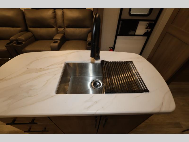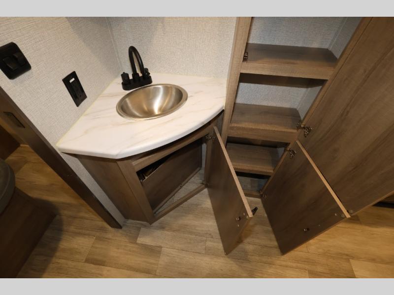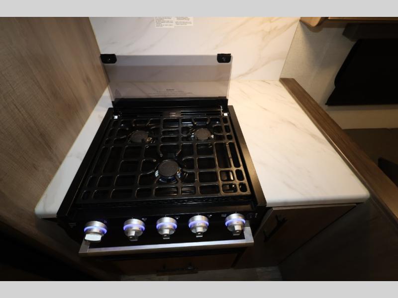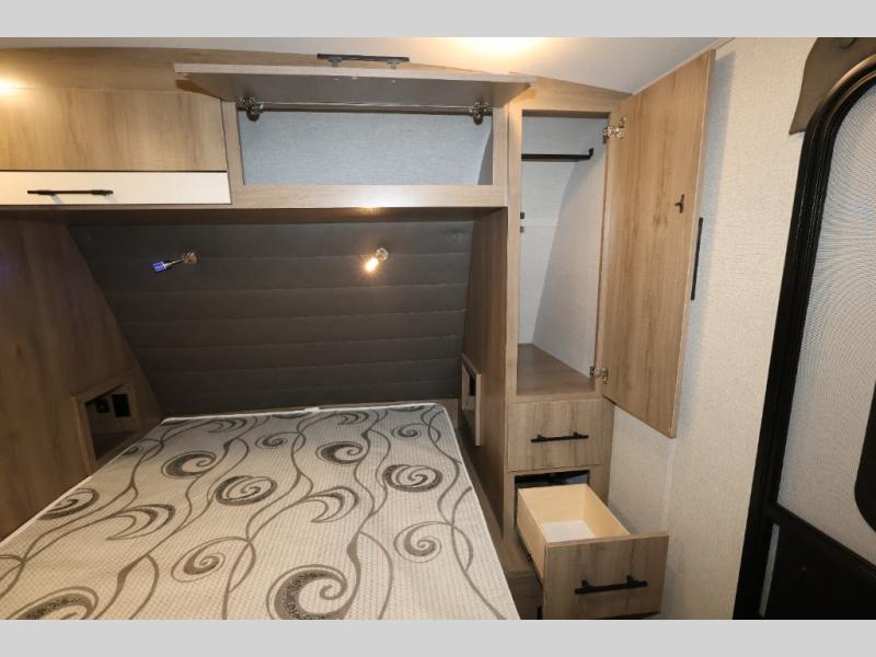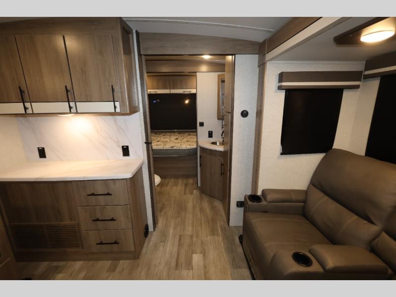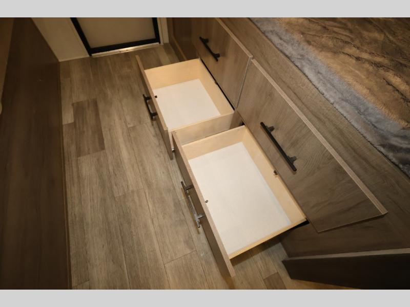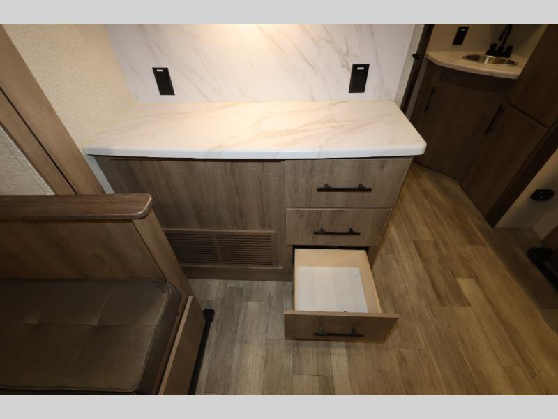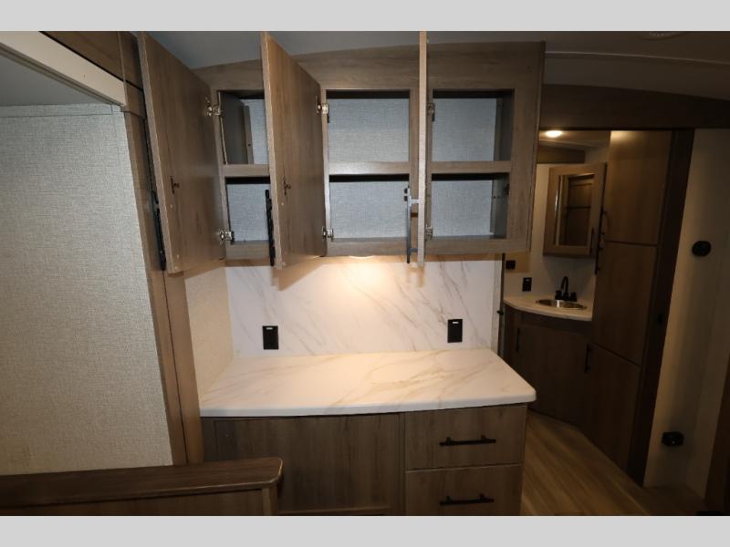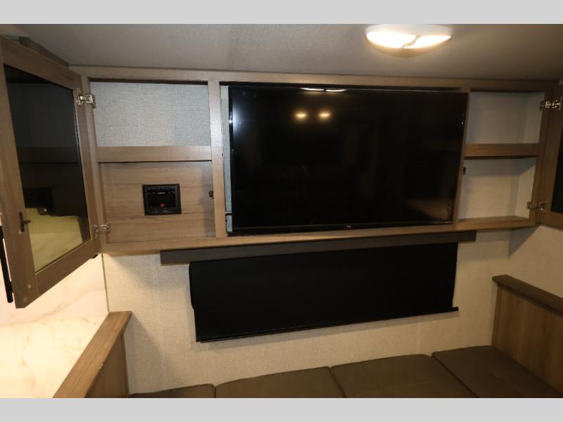 A great travel trailer for larger families or those that enjoy traveling with a few friends! This Imagine quad bunk model features two private bedrooms, with the master up front including a private entry/exit door just beyond a spacious walk-through bathroom that features a 30" x 36" shower with skylight to bring in more natural lighting each day, plus a toilet, sink and linen storage. In the kitchen, a nice island for food prep and cleaning up makes it easy to be part of the conversation in the room while you get meals ready for everyone. Speaking of food prep, how about the outside griddle and 1.6 cu. ft. refrigerator which is perfect for cooking outside, or for making late night snacks when all are enjoying the evening under the stars or in lawn chairs under one of two 9' 6" awnings with LED lighting. Your kids can bring along extra guests with the added sleeping that a quad bunk model provides. And, there is plenty of storage in the private bunkroom with drawers beneath for their things, plus a rear baggage door that is 42" x 22" for even more storage space for extra toys and gear.