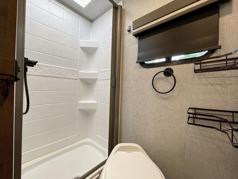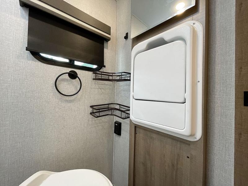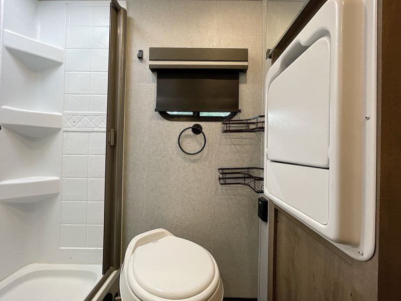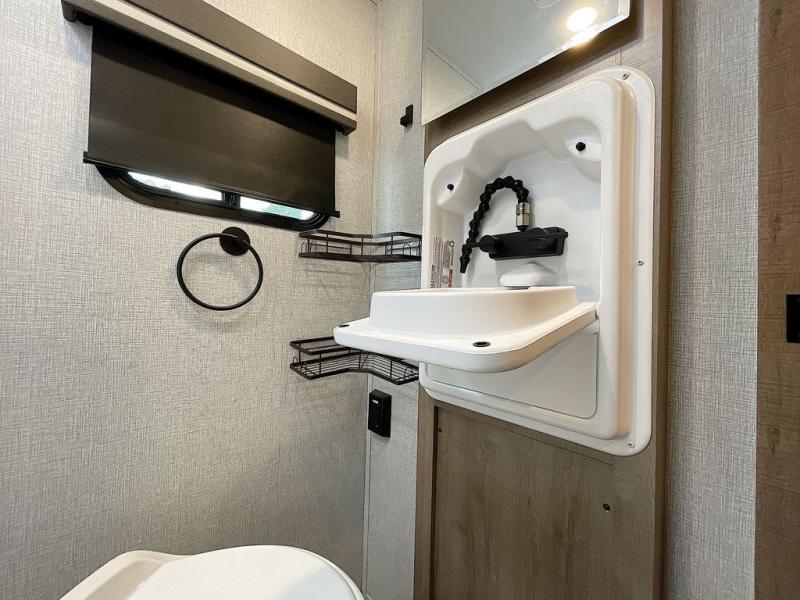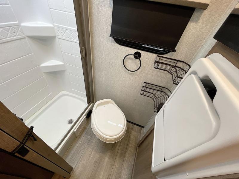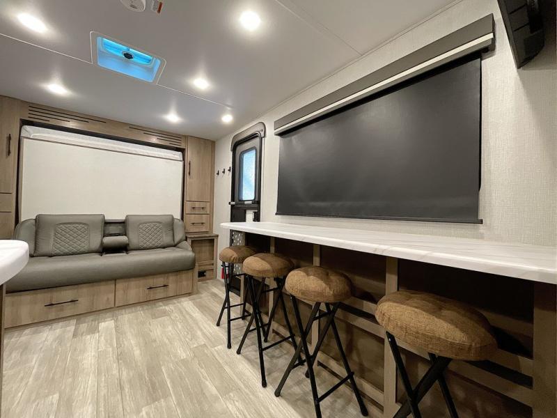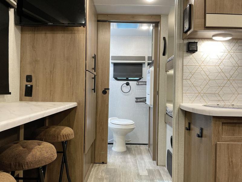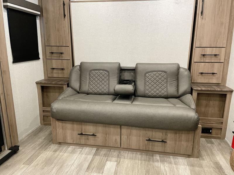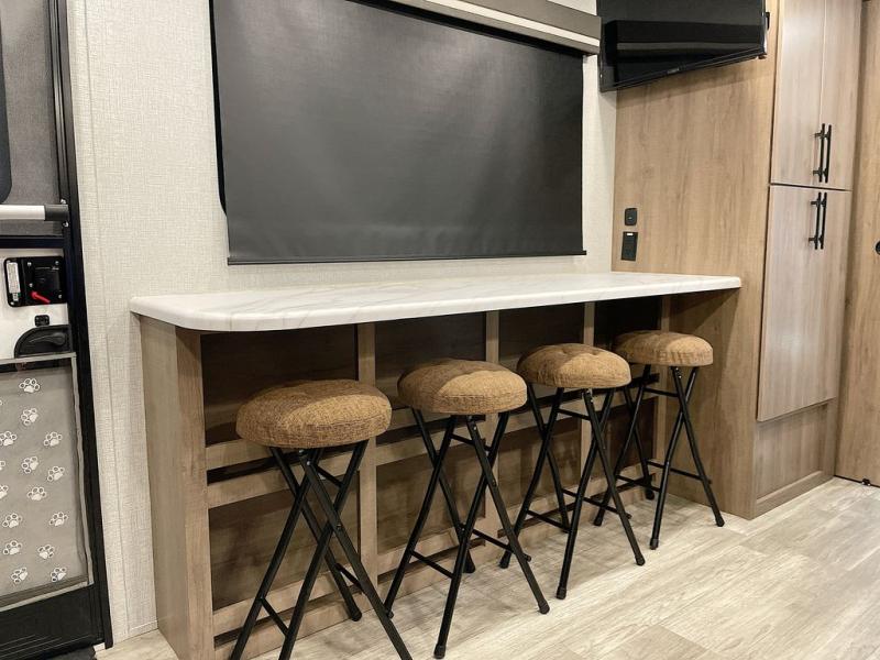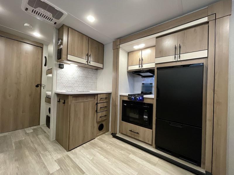 You will feel right at home in this travel trailer! Everyone will have a comfortable place to sleep between the front queen Murphy bed which can transform into a sofa and the 32" x 72" bunk beds. After you have prepared a delicious meal on the two burner cooktop or outside griddle, you can enjoy it at the bar tabletop dinette with four stools for seating. The full bathroom has a walk-in shower with skylight to let in natural lighting and a flip-up sink to save on space!