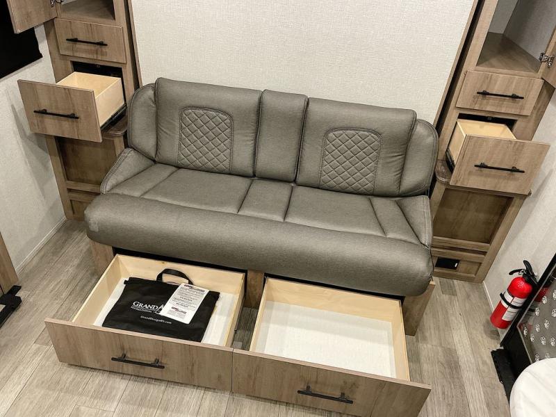 Aim for new destinations in one of these Grand Design Imagine AIM travel trailers! They are Grand Design's first single axle travel trailer. The Azdel composite panels are about half the weight of wood with the same thickness and also creates a superior sound absorption and thermal insulation. There are four mandatory packages included that will make your camping experience even better. The gel coat fiberglass exterior and one-piece roof membrane will hold up through all of your adventures. Adventure in motion with your favorite model today!