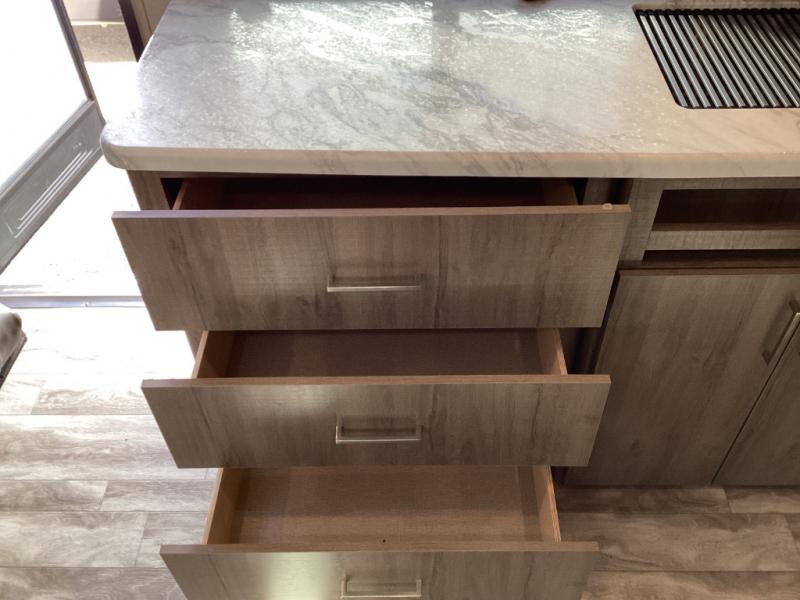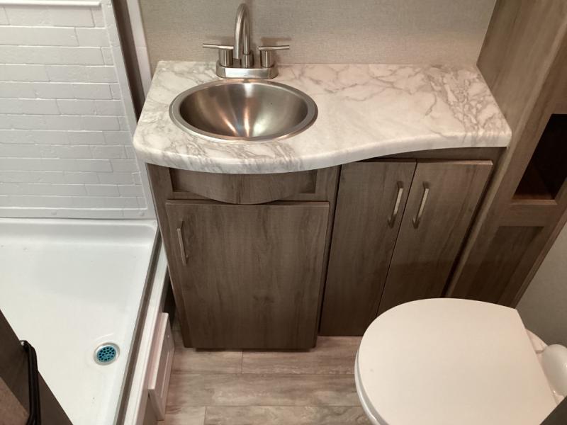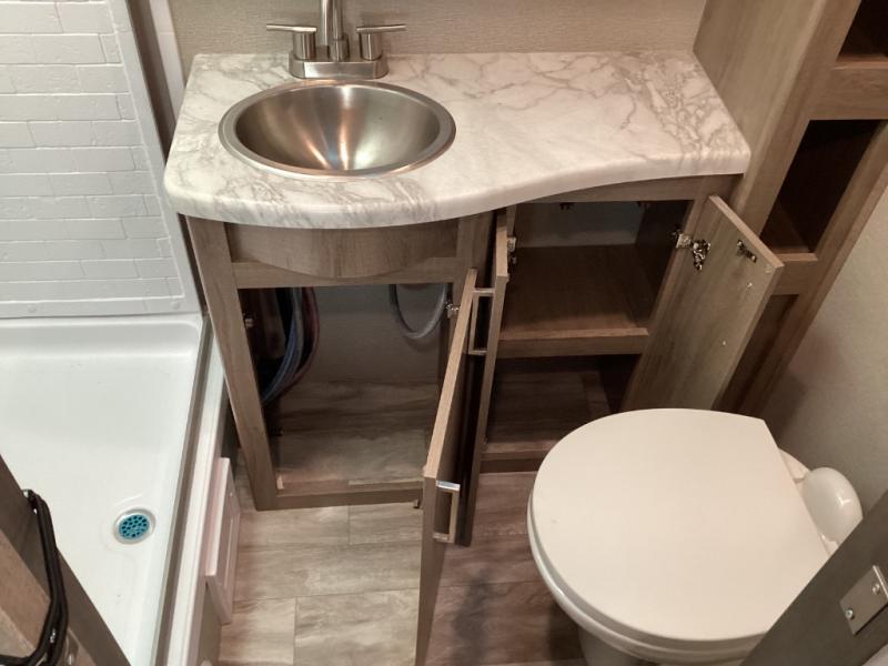 Compact enough for easier towing and parking, yet built with upscale features: laminated construction, tankless water heater, and a heated underbelly are part of the package. Whether you’re doing weekend getaways or longer road trips, this unit offers both convenience and quality.