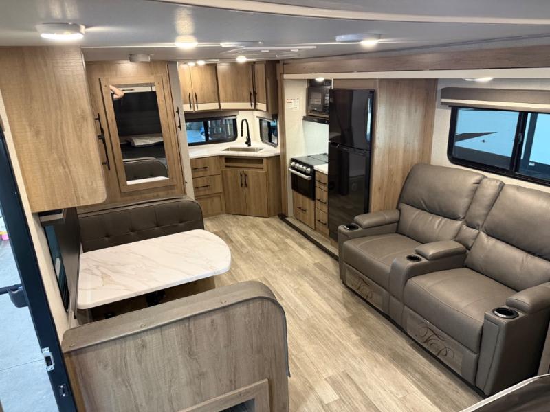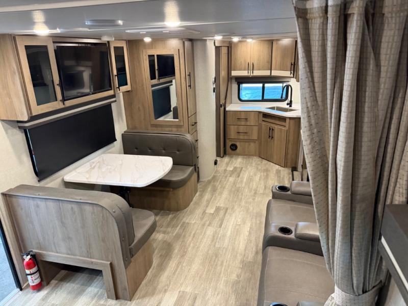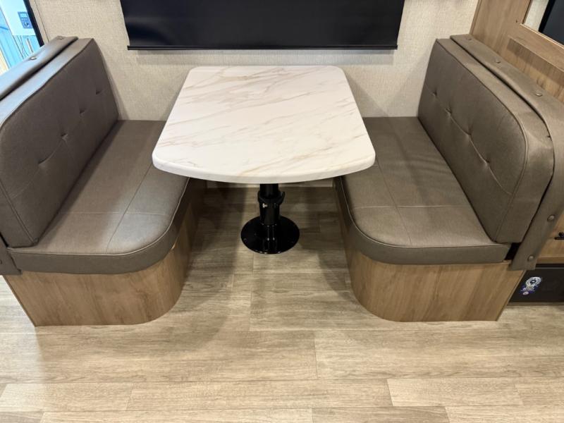 This Imagine XLS travel trailer has theater seating and a booth dinette that you can use any time you need a little break from the outdoors. If you want to come in and grab a coffee, put together a puzzle, or work on your itinerary for the week, just put up your feet and relax. You could even switch on the LED HDTV if you want a little entertainment. The front queen-size bed has a privacy curtain that you can draw to create a semi-private bedroom, and in the back of the trailer you will find the rest of your amenities, like the kitchen and the bathroom. The large slide makes it easy to enjoy spending your time indoors, but if you do want to get back outside, you can sit underneath the 18' electric awning for some shade.