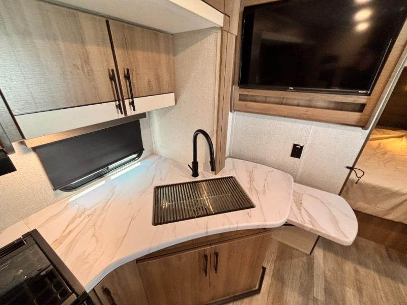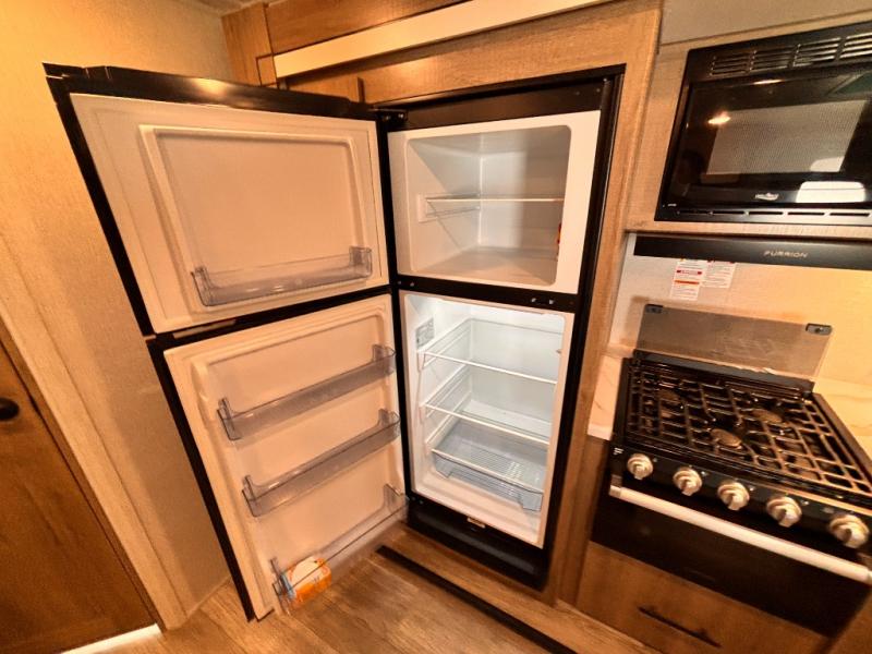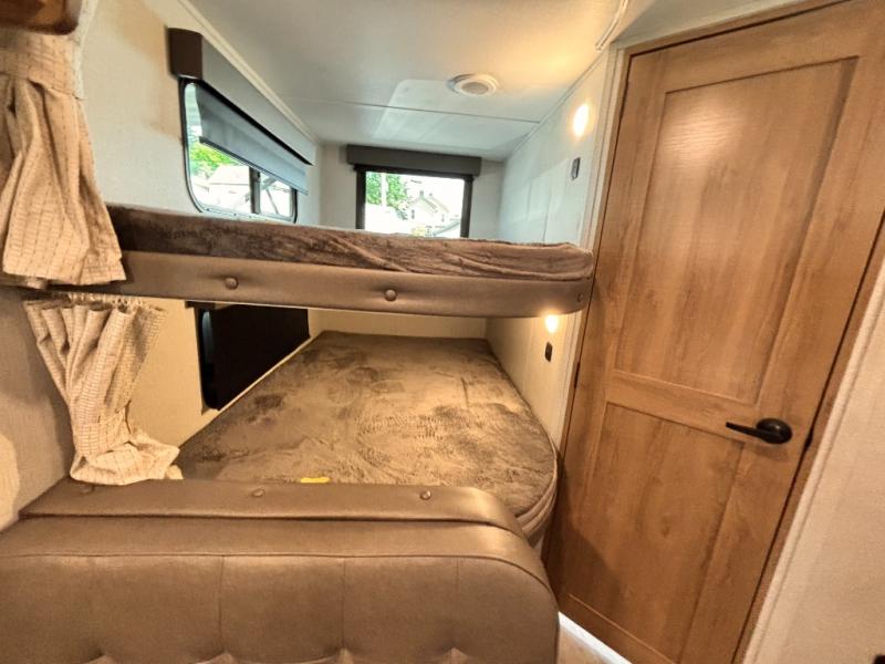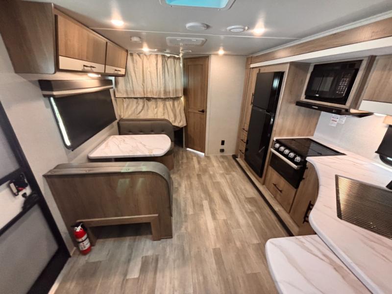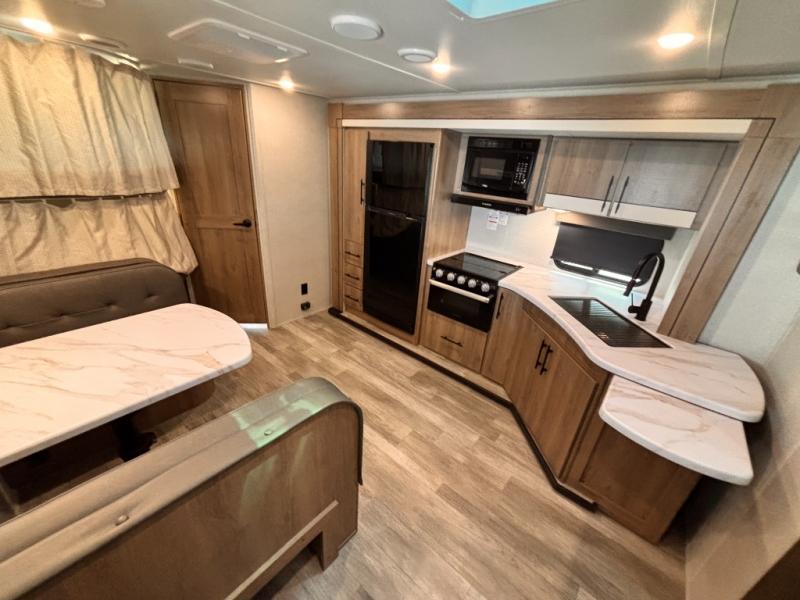 It won't be long before you have another trip with this Imagine XLS travel trailer on the agenda! You will find a walk-around queen-size bed up front in the private bedroom, and right next to the entry door is a coat closet so that you can hang up your coats when you come inside. The booth dinette is right next to the window, so you can look out at your surroundings while you enjoy breakfast. The double-size bunks have some privacy curtains, and the bunks are right next to the full bathroom for easy access in the middle of the night. The kitchen rests on the single slide which gives you more space to get dinner in the oven, and you can have some more prep space by using the flip-up countertop extension.