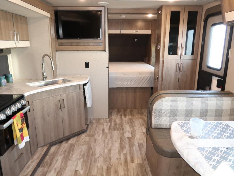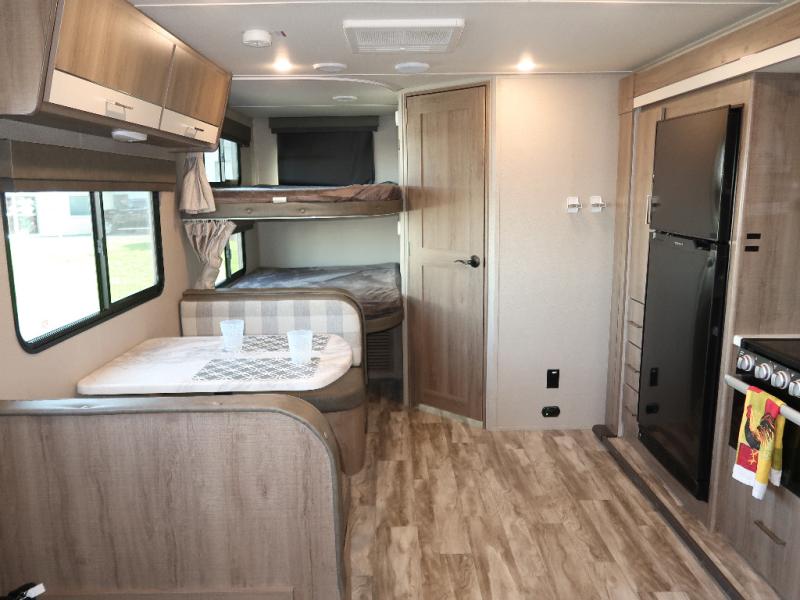 It won't be long before you have another trip with this Imagine XLS travel trailer on the agenda! You will find a walk-around queen-size bed up front in the private bedroom, and right next to the entry door is a coat closet so that you can hang up your coats when you come inside. The booth dinette is right next to the window, so you can look out at your surroundings while you enjoy breakfast. The double-size bunks have some privacy curtains, and the bunks are right next to the full bathroom for easy access in the middle of the night. The kitchen rests on the single slide which gives you more space to get dinner in the oven, and you can have some more prep space by using the flip-up countertop extension.