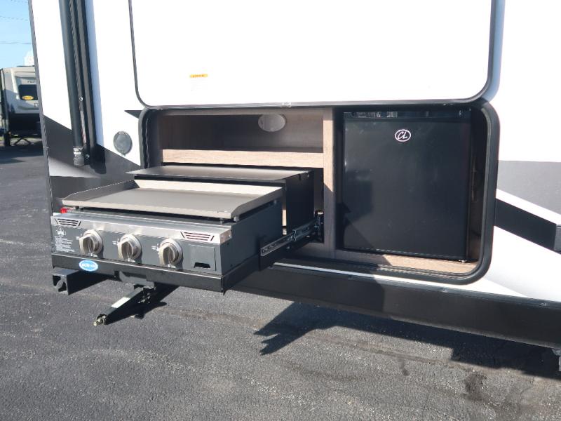 Let your imagination run wild with the possibilities that the Grand Design Imagine XLS travel trailer can provide! The Imagine XLS has been built with oversized tank capacities, an extra-large 2" fresh water drain valve, a ducted A/C system, a power tongue jack, and a heated and enclosed underbelly with suspended tanks. There is a designated heat duct to the subfloor and a residential ductless heating system throughout. For outdoor adventures, the electric awning with LED lights will enable you to stay protected, and the exterior speakers make any time outside a party. You will also love the XLS Solar Package that comes with a 165W roof mounted solar panel, a 25 Amp charge controller, a 12V 10 cu. ft. refrigerator, and roof mounted quick connect plugs!