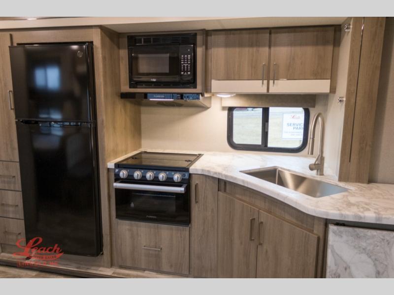 It won't be long before you have another trip with this Imagine XLS travel trailer on the agenda! You will find a walk-around queen-size bed up front in the private bedroom, and right next to the entry door is a coat closet so that you can hang up your coats when you come inside. The booth dinette is right next to the window, so you can look out at your surroundings while you enjoy breakfast. The double-size bunks have some privacy curtains, and the bunks are right next to the full bathroom for easy access in the middle of the night. The kitchen rests on the single slide which gives you more space to get dinner in the oven, and you can have some more prep space by using the flip-up countertop extension.