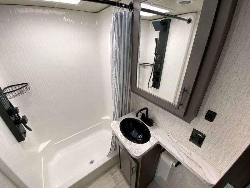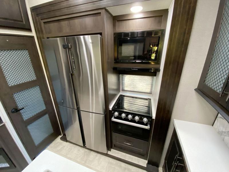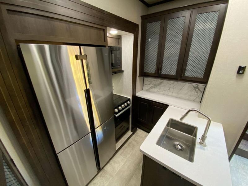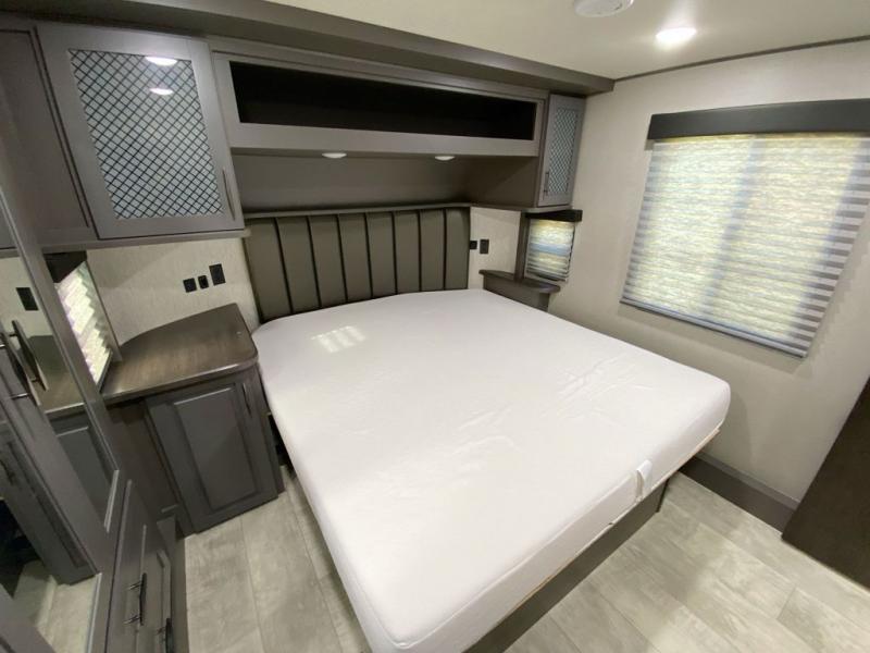 Are you looking for adventure and fun? The Momentum G-Class toy hauler by Grand Design will help you find it! You can explore during any season you choose with the Insulation Package that includes a heated and enclosed underbelly with suspended tanks, a high-capacity furnace, a moisture barrier floor enclosure, and cabinet-mounted heat ducts. Each model includes a fuel station with an interior and exterior gauge, a dovetail rear rend, and 2,500-LB tie-downs anchored into the chassis. Throughout the Momentum G-Class interior, you'll enjoy many comfortable features like large panoramic windows, a shower skylight, USB chargers in the bedroom, and residential cabinetry.