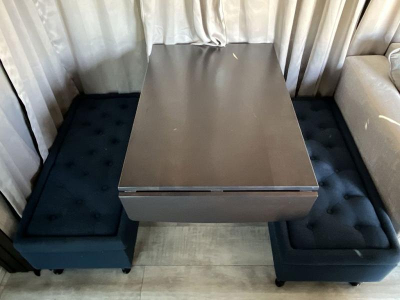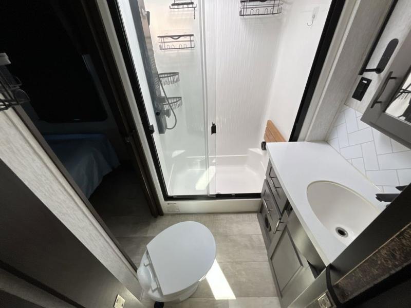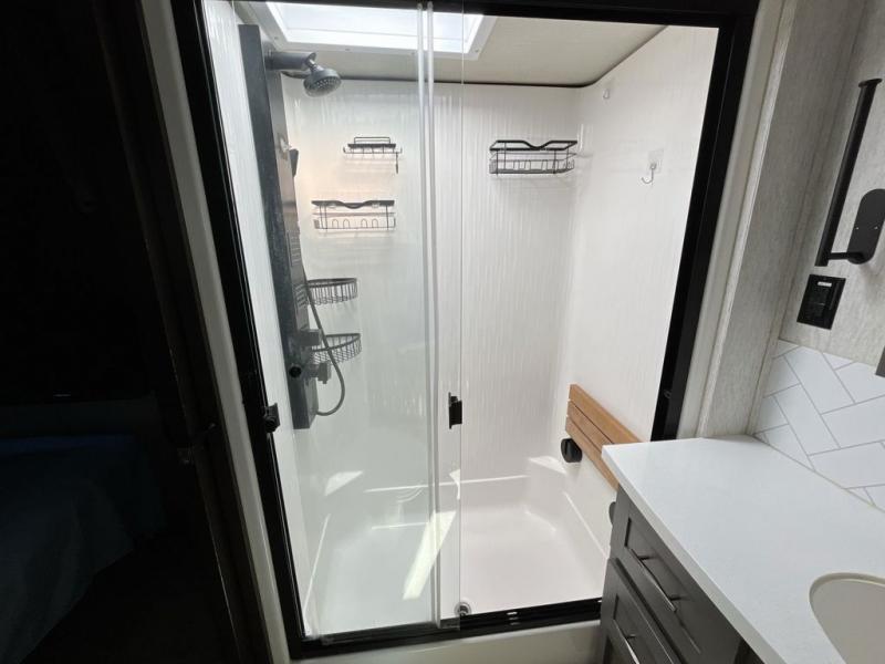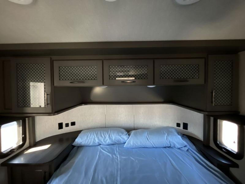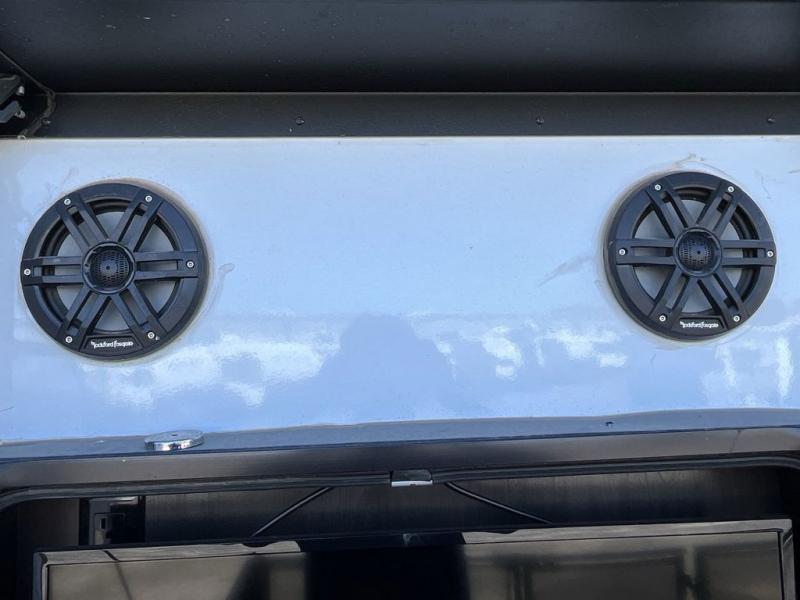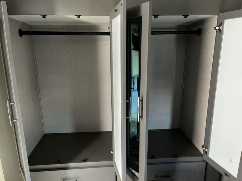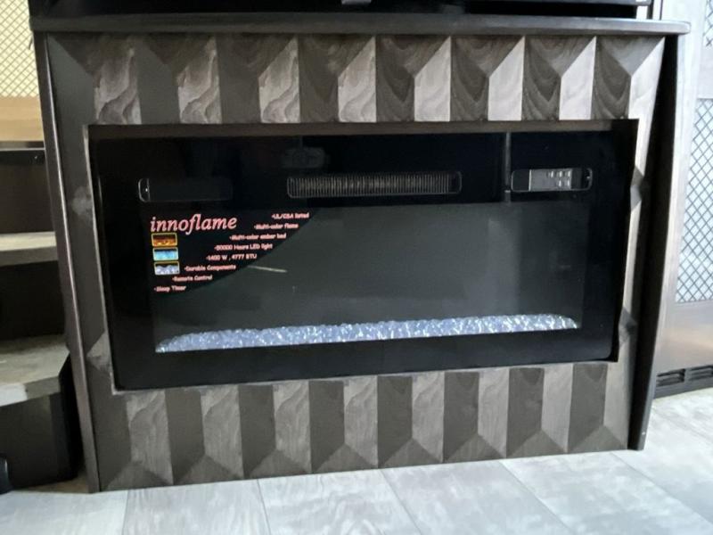 Get ready for a lot of fun when you head out to the off-road park, a special event, or a long trip with your toys! You will love the garage with the Fast Ramp rear ramp door, the Ram-Air garage vents on both sides, the 2,500 lb. rated flush-mount tie-downs and the protective diamond plate on the garage sidewalls. This area can become a bedroom or an extra living area if you want to add Happi-Jac rollover sofas/table with a top bed option, plus you will already have a half bath for convenience, an LED TV and storage for your gear. The living and kitchen area is spacious with dual slides and a kitchen island with bar stools, a free standing table and theatre seating or choose the super sofa option, and everything you need to feed everyone. The fold-down side patio offers an LED TV, storage and a great place to relax outdoors above ground. There are many more features to enjoy, and several options to customize your fifth wheel.