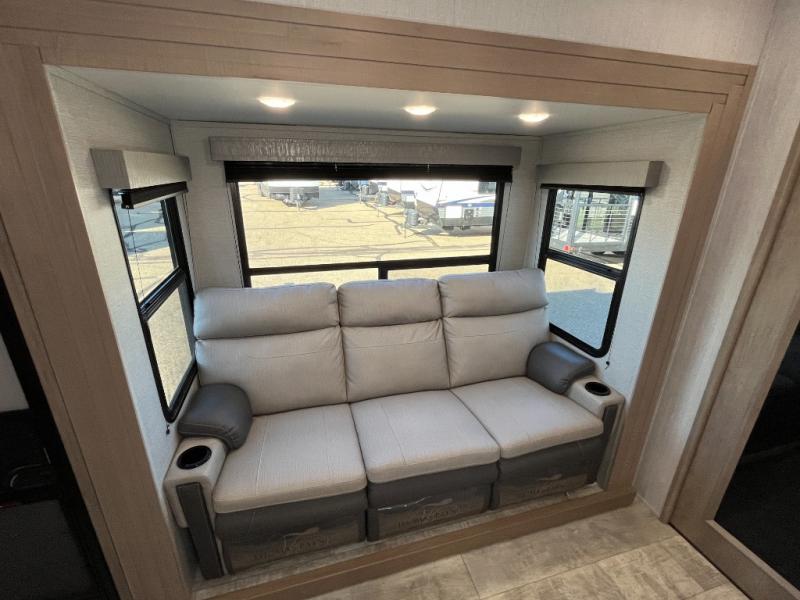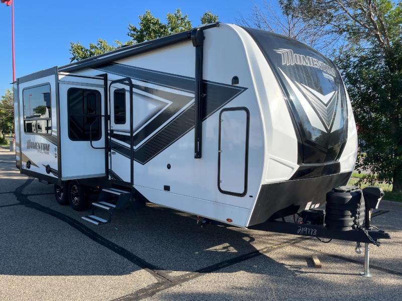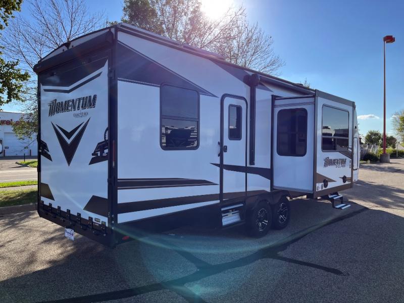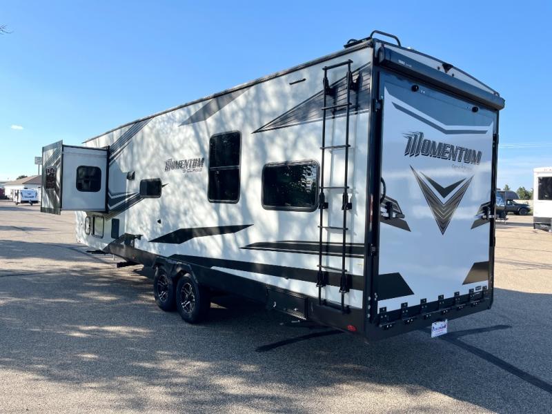 Are you looking for adventure and fun? The Momentum G-Class toy hauler by Grand Design will help you find it! You can explore during any season you choose with the Insulation Package that includes a heated and enclosed underbelly with suspended tanks, a high-capacity furnace, a moisture barrier floor enclosure, and cabinet-mounted heat ducts. Each model includes a 30-gallon fuel station with an interior and exterior gauge, a dovetail rear rend, and 2,500-LB tie-downs anchored into the chassis. Throughout the Momentum G-Class interior, you'll enjoy many comfortable features like large panoramic windows, a shower skylight, USB chargers in the bedroom, and residential cabinetry.
