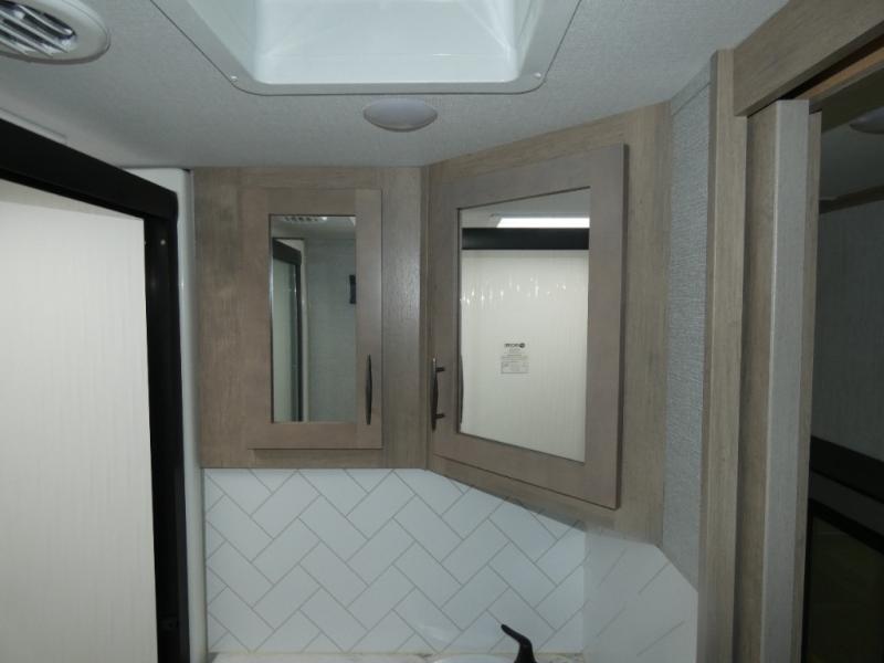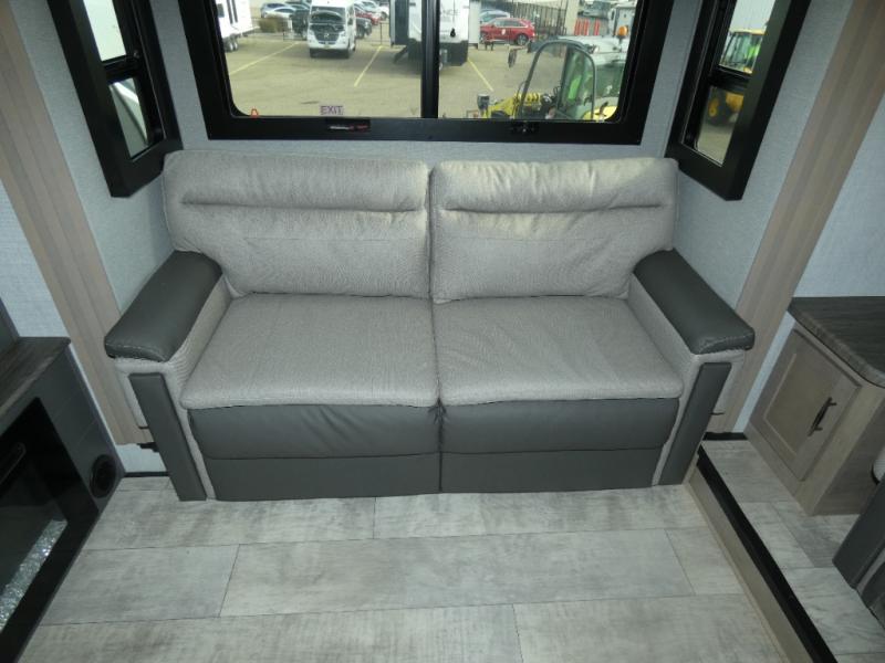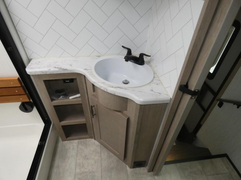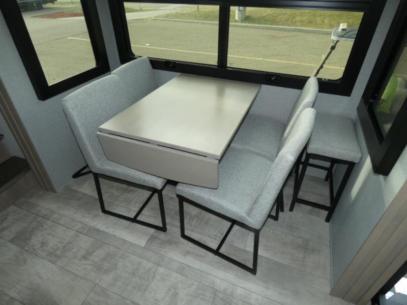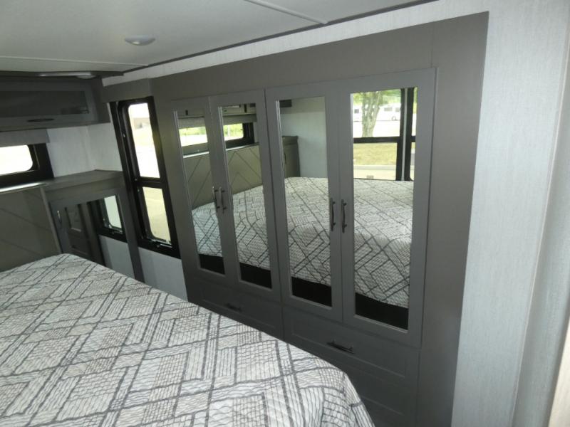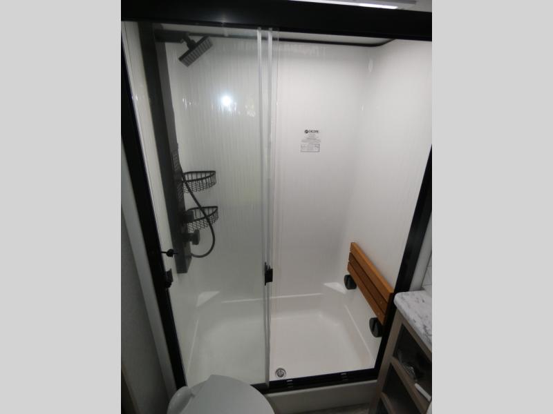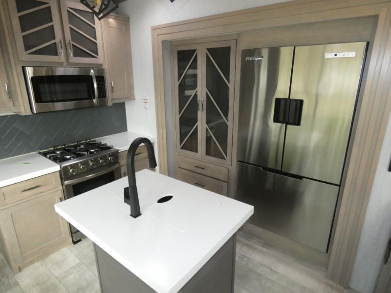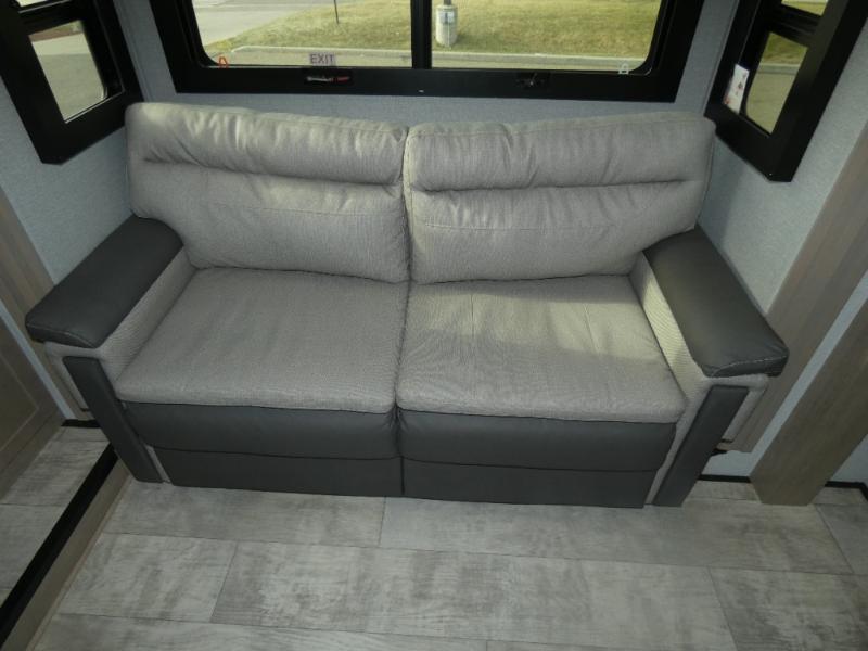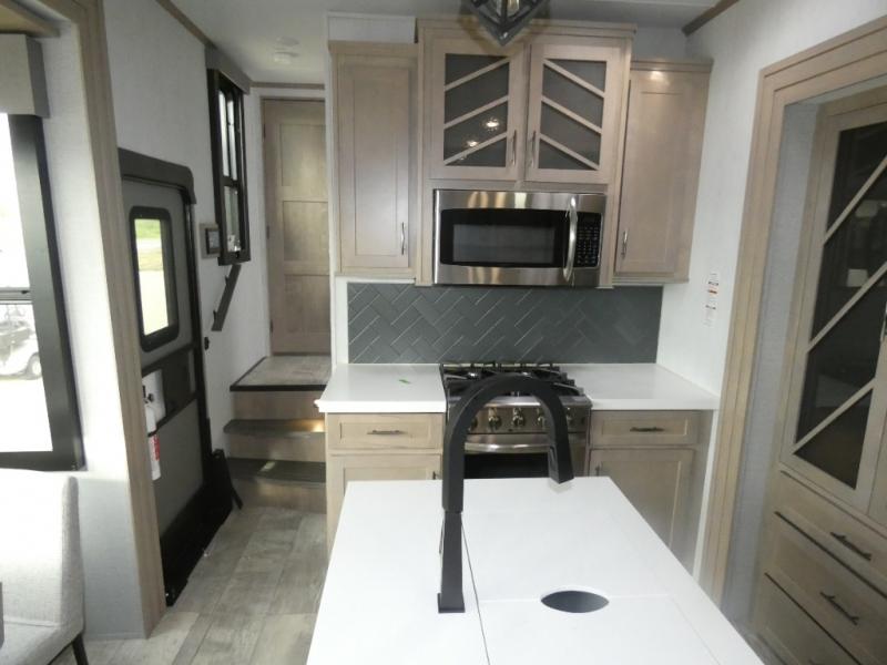 With any Momentum M-Class toy hauler by Grand Design, you will enjoy luxury at every turn! They have been constructed to a superior standard with a thermal roof design, triple insulated main floor and garage floor, and a Rail-Tite underbelly seal that will allow you to camp in all elements. Each model also features a, 8' 5" wide body chassis with a wide rail design, no wheel wheels, and a dovetail entry for easier loading. The Stealth A/C system provides maximum cooling power, and the CRE3000 suspension system means you can enjoy a smooth tow each time. You will love the luxurious interior with a professional grade stainless steel cooktop, interior color changing LED accent lighting, a fiberglass shower with a glass door, and solid surface countertops.