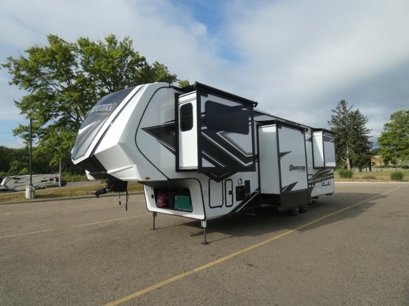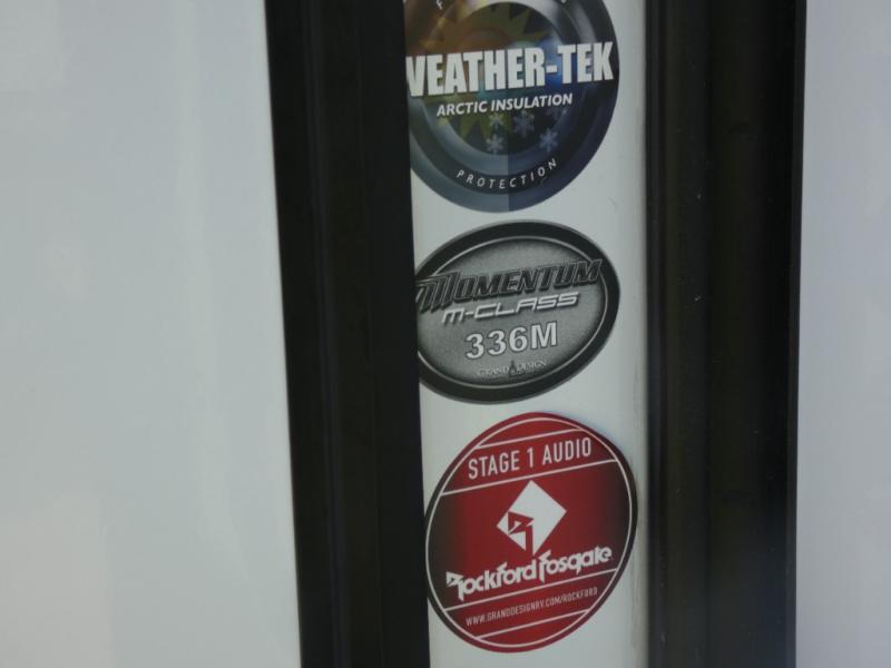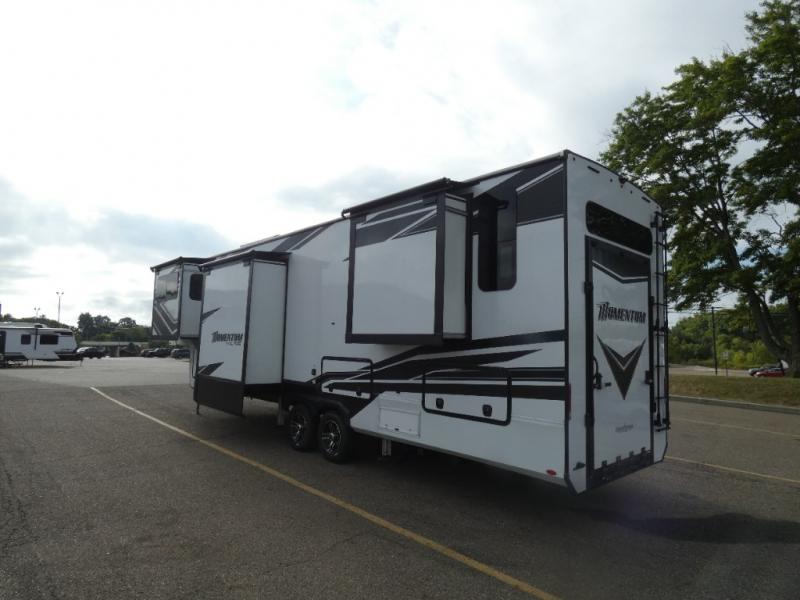 Grand Design Momentum M-Class 336M toy hauler fifth wheel highlights: