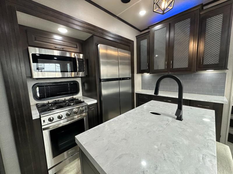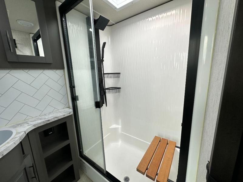 With any Momentum M-Class toy hauler by Grand Design, you will enjoy luxury at every turn! They have been constructed to a superior standard with a thermal roof design, triple insulated main floor and garage floor, and a Rail-Tite underbelly seal that will allow you to camp in all elements. Each model also features an 8' 5" wide body chassis with a wide rail design, no wheel wheels, and a dovetail entry for easier loading. The Stealth A/C system provides maximum cooling power, and the CRE3000 suspension system means you can enjoy a smooth tow each time. You will love the luxurious interior with a professional grade stainless steel cooktop, interior color changing LED accent lighting, a fiberglass shower with a glass door, and solid surface countertops.