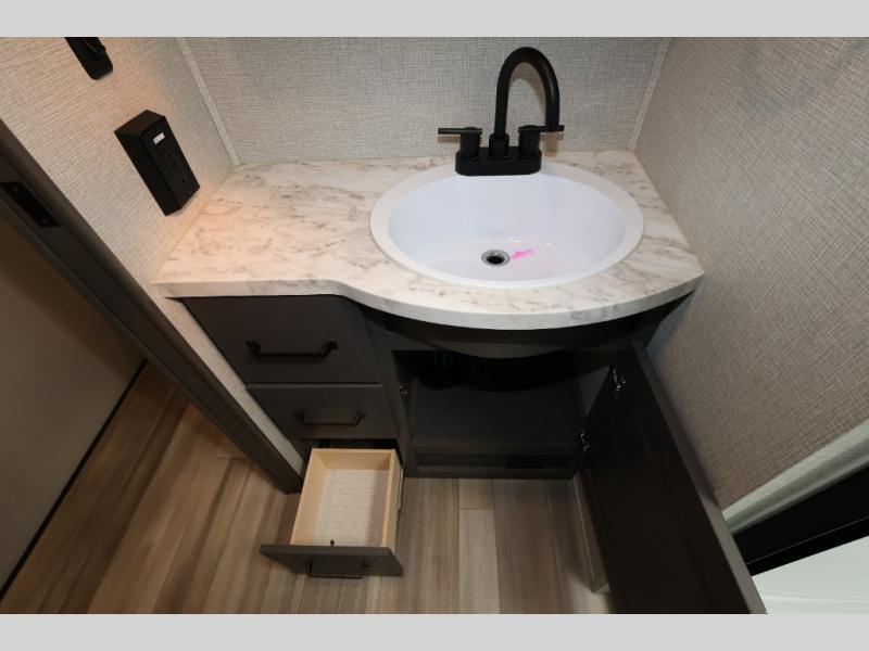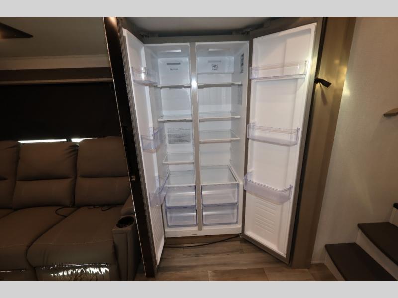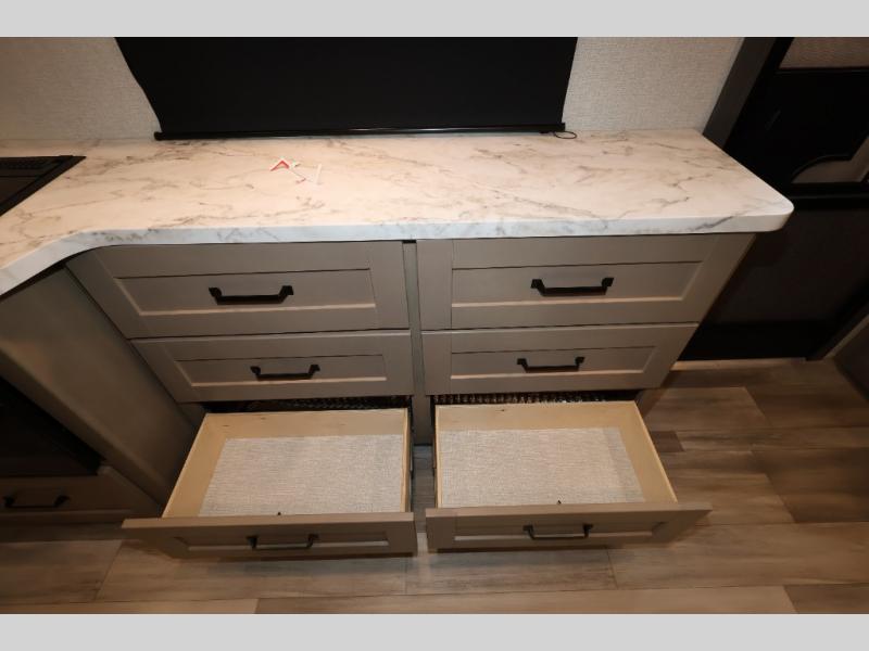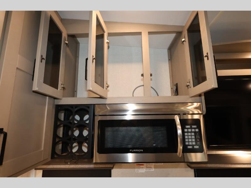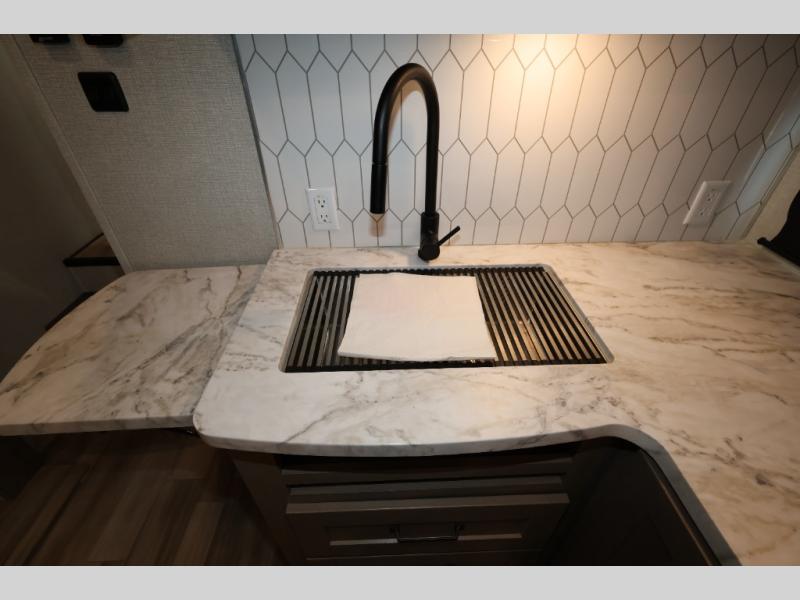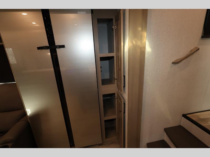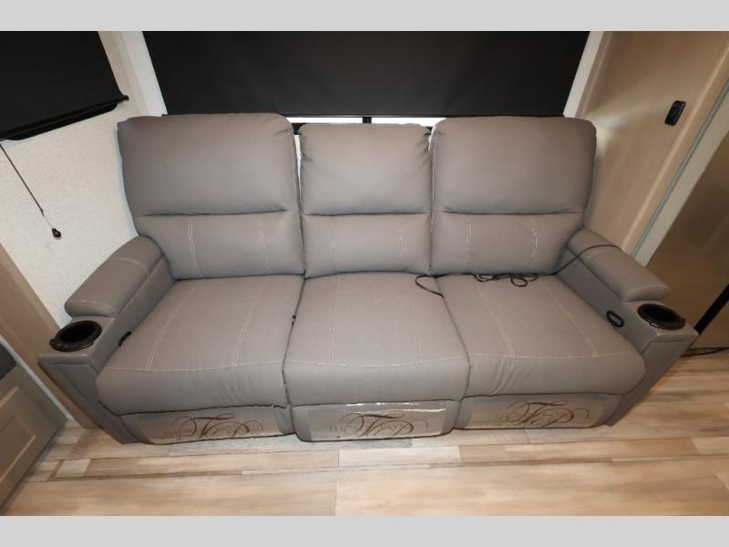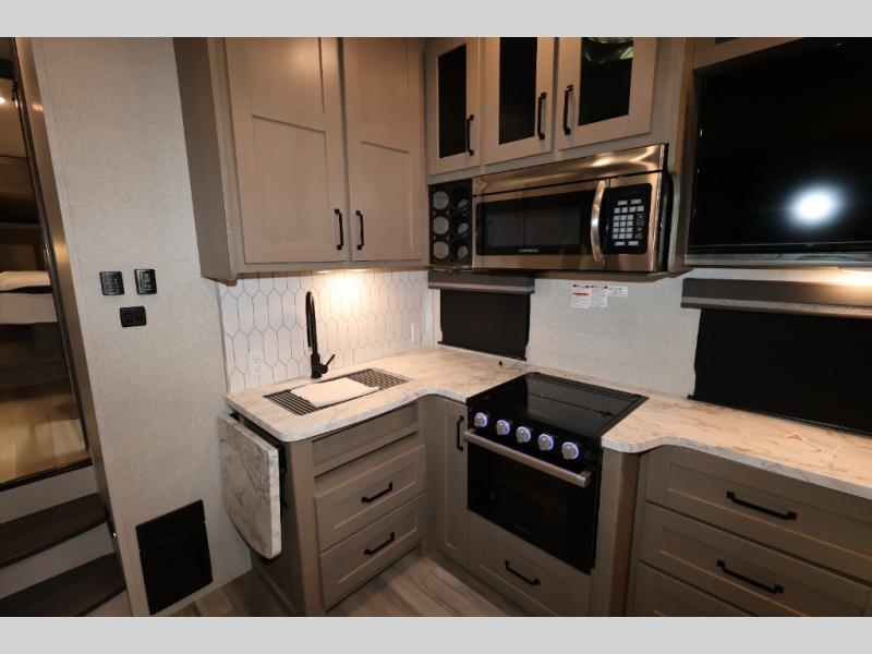 With any Reflection 150 Series fifth wheel by Grand Design, there is more available payload capacity and a broader range of half-ton trucks capable of towing this fifth wheel, and no slider hitch is needed thanks to the 90-degree turning radius which makes them short bed friendly and easier to tow. The mandatory Ultimate Power package provides a "One-Touch" automatic leveling system and a detachable power cord with LED light for easy setup, plus motion sensor pass-through lighting and entry lighting, and the Tire Linc TPMS will help you stay safe on the road. The interior offers residential luxury from the cabinetry and premium congoleum flooring, plus the booth dinette to the residential-style window treatment. Make your refined decision today!