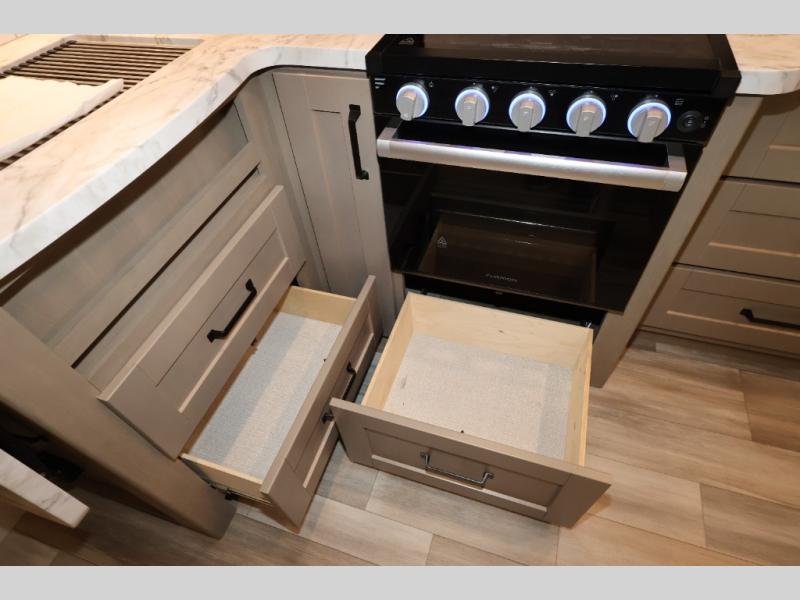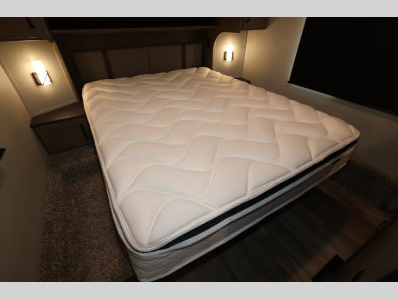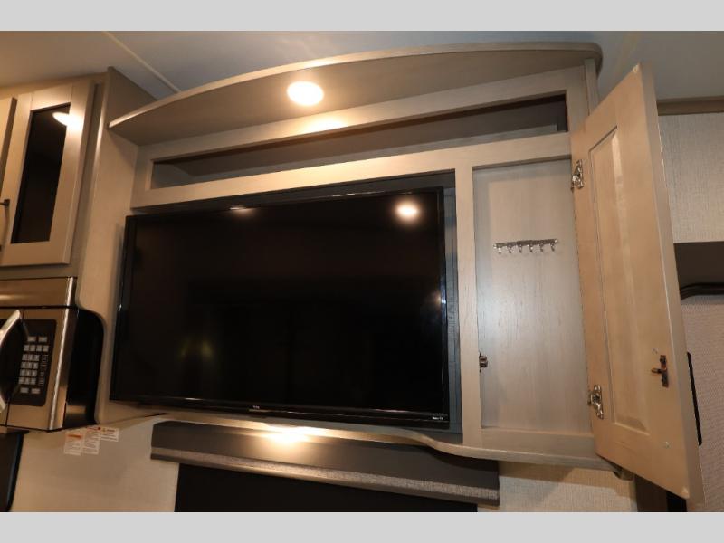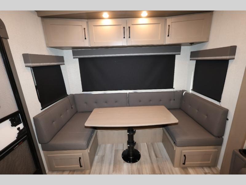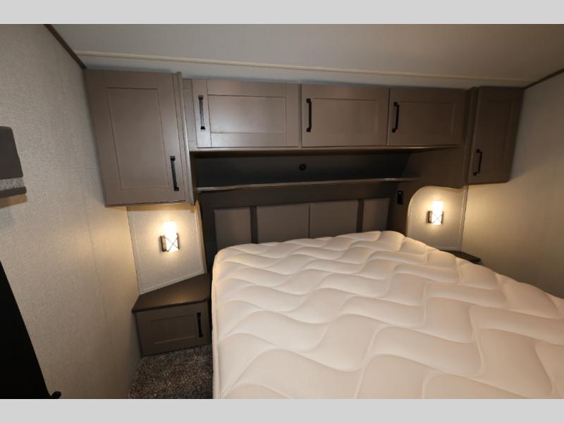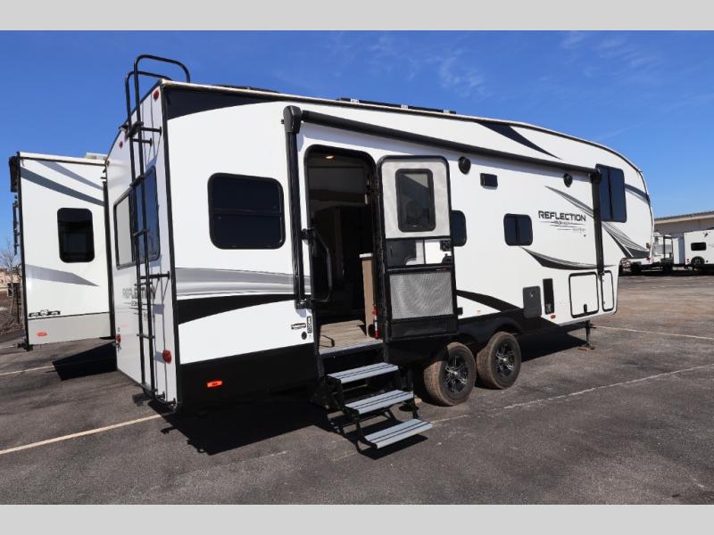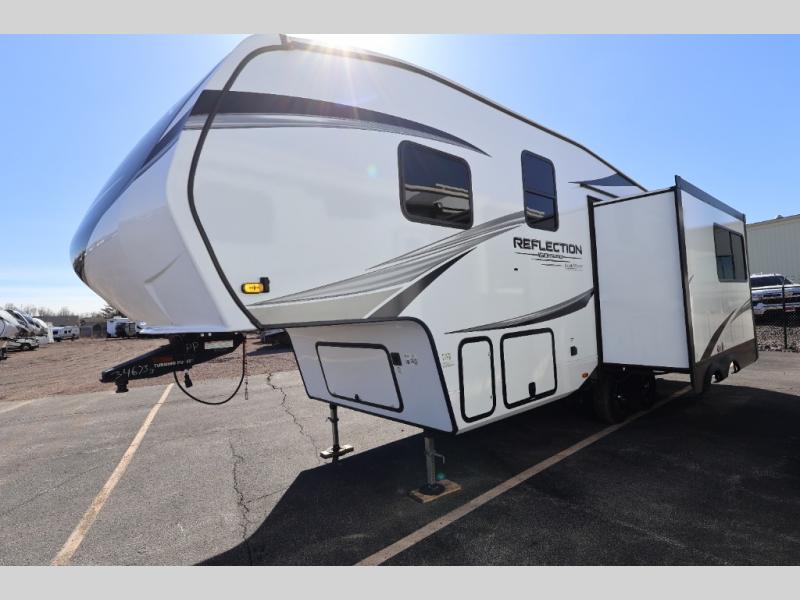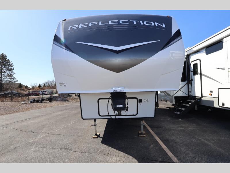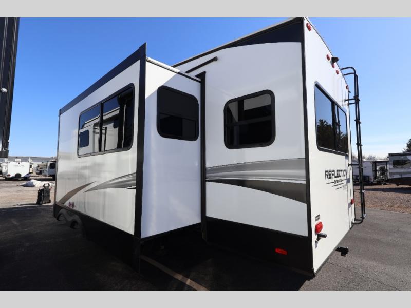 Feel right at home in this Reflection 150 Series with a private bedroom that includes a walk-around queen bed with storage on each side, windows, and a space savings sliding door. The full bathroom offers a walk-in shower, storage for your linens and a sliding door for easy access. When you get hungry, the cook will have an L-shaped kitchen area to make meals, plus full amenities including a 30" microwave, a flip-up counter extension, a pantry for your dry goods and a 10 cu. ft. refrigerator to store lots of food and cold beverages. You can dine at the rear U-shaped dinette lounge and enjoy the view out of all the windows or outside under the 18' electric awning. And the theatre seating will be a nice place to relax and watch the 40" LED HDTV.