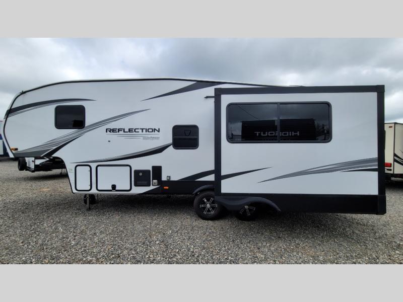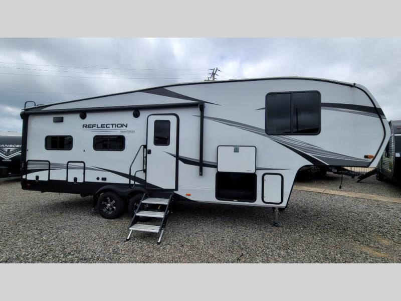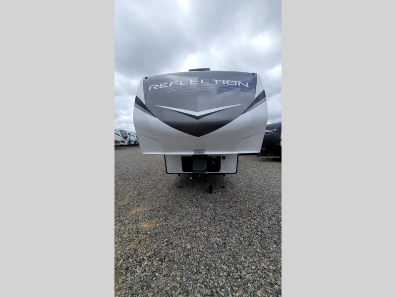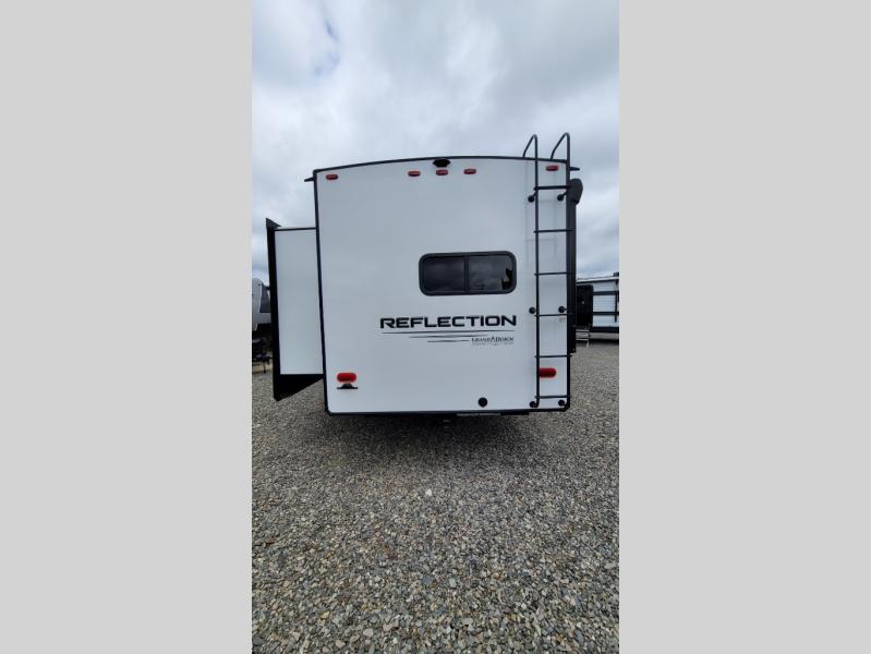With any Reflection 150 Series fifth wheel by Grand Design, there is more available payload capacity and a broader range of half-ton trucks capable of towing this fifth wheel, and no slider hitch is needed thanks to the 90-degree turning radius which makes them short bed friendly and easier to tow. The mandatory Ultimate Power package provides a "One-Touch" automatic leveling system and a detachable power cord with LED light for easy setup, plus motion sensor pass-through lighting and entry lighting, and the Tire Linc TPMS will help you stay safe on the road. The interior offers residential luxury from the cabinetry and premium congoleum flooring, plus the booth dinette to the residential-style window treatment. Make your refined decision today!
