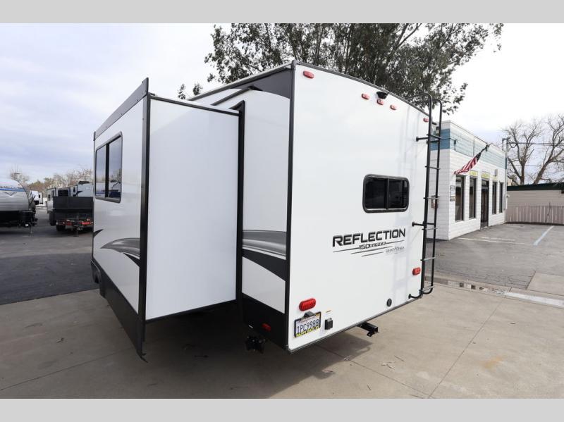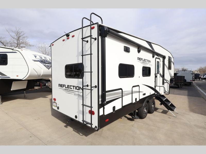 With any Reflection 150 Series fifth wheel by Grand Design, there is more available payload capacity and a broader range of half-ton trucks capable of towing this fifth wheel, and no slider hitch is needed thanks to the 90-degree turning radius which makes them short bed friendly and easier to tow. The mandatory Ultimate Power package provides a "One-Touch" automatic leveling system and a detachable power cord with LED light for easy setup, plus motion sensor pass-through lighting and entry lighting, and the Tire Linc TPMS will help you stay safe on the road. The interior offers residential luxury from the cabinetry and premium congoleum flooring, plus the booth dinette to the residential-style window treatment. Make your refined decision today!