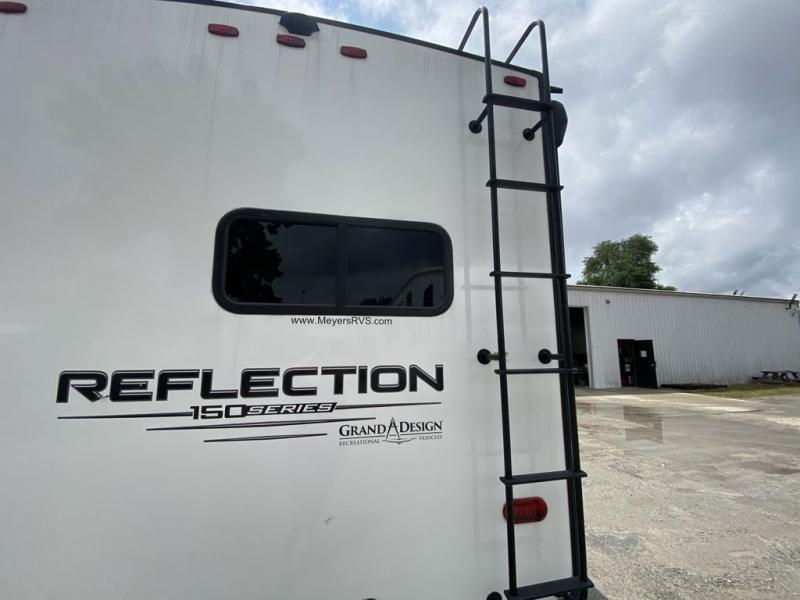 With any Reflection 150 Series fifth wheel by Grand Design, there is more available payload capacity and a broader range of half-ton trucks capable of towing this fifth wheel, and no slider hitch is needed thanks to the 90-degree turning radius which makes them short bed friendly and easier to tow. The mandatory Ultimate Power package provides a "One-Touch" automatic leveling system and a detachable power cord with LED light for easy setup, plus motion sensor pass-through lighting and entry lighting, and the Tire Linc TPMS will help you stay safe on the road. The interior offers residential luxury from the cabinetry and premium congoleum flooring, plus the booth dinette to the residential-style window treatment. Make your refined decision today!