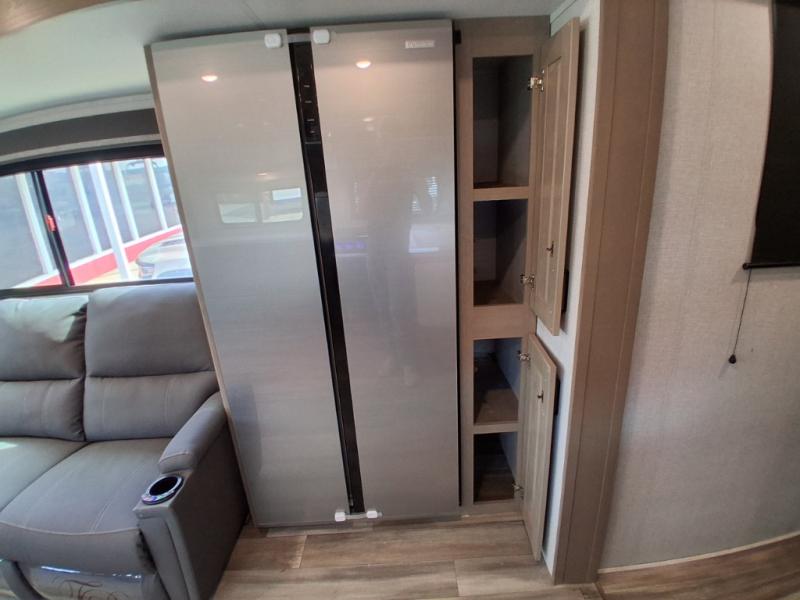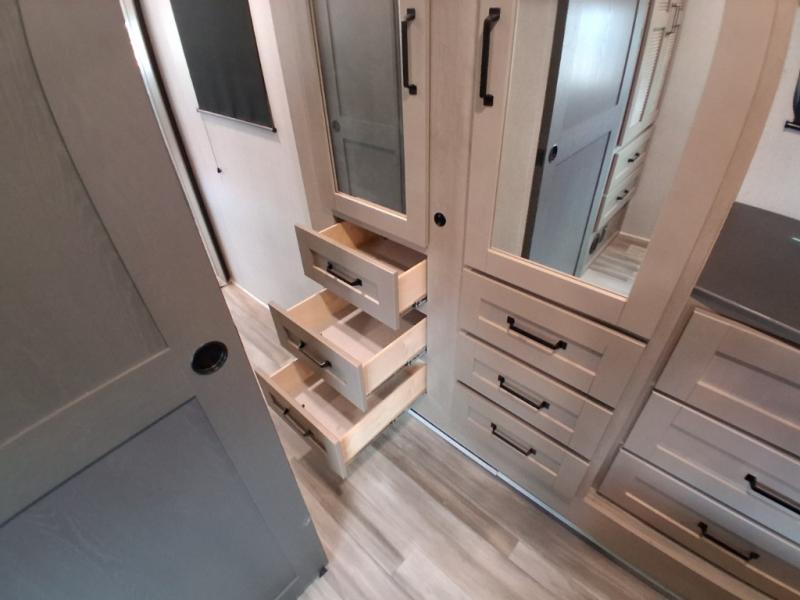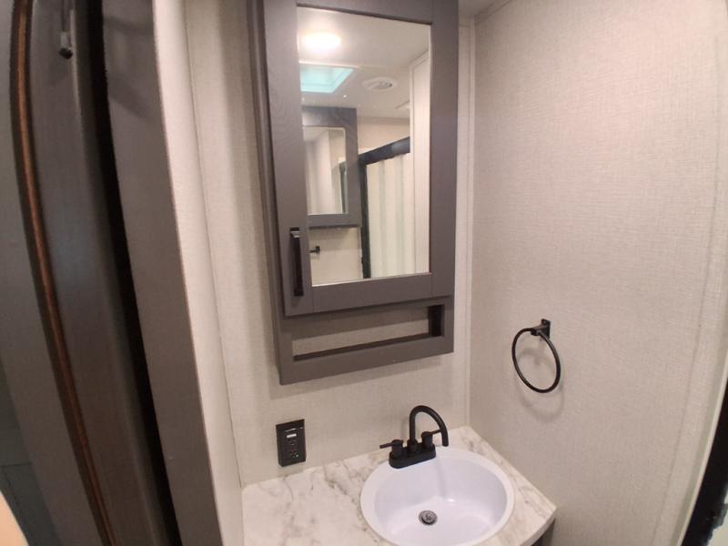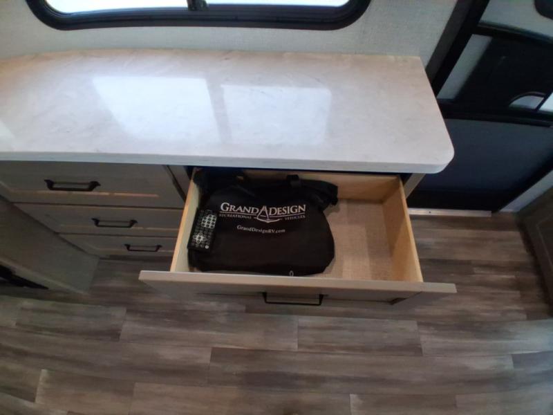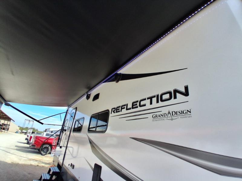 With any Reflection travel trailer by Grand Design, you will have a solar panel for off-grid camping and a 50 amp charge controller and inverter prep, a Universal All-In-One Docking Station, unobstructed pass-through storage, and nitrogen filled radial tires. Some other top features include the 30" stainless steel microwave, the maximum 7-foot headroom, and the ductless heating system with no vents in the floor to collect debris. Each is constructed of gel coat exterior sidewalls, residential 5" truss rafters, walk-on roof decking, a fiberglass and radiant foil roof and front cap insulation plus laminated aluminum framed side walls, roof and end walls in slide rooms. Choose luxury, value, and towability over all the others, take home a Reflection of your good taste!