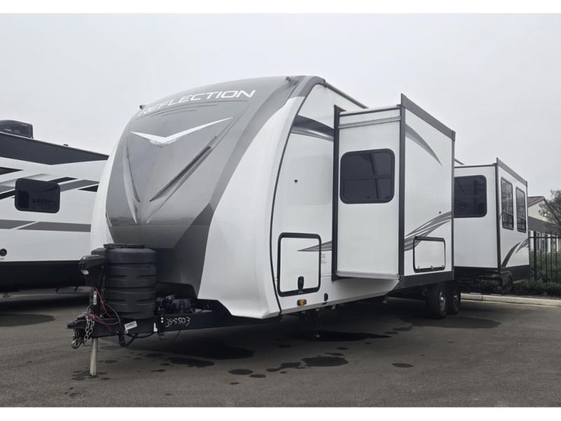 With any Reflection travel trailer by Grand Design, you will have a solar panel for off-grid camping and a 50 amp charge controller and inverter prep, a Universal All-In-One Docking Station, unobstructed pass-through storage, and nitrogen filled radial tires. Some other top features include the 30" stainless steel microwave, the maximum 7-foot headroom, and the ductless heating system with no vents in the floor to collect debris. Each is constructed of gel coat exterior sidewalls, residential 5" truss rafters, walk-on roof decking, a fiberglass and radiant foil roof and front cap insulation plus laminated aluminum framed side walls, roof and end walls in slide rooms. Choose luxury, value, and towability over all the others, take home a Reflection of your good taste!