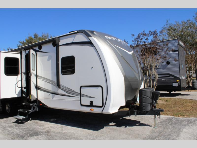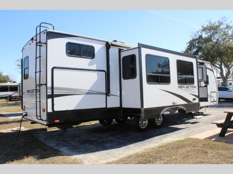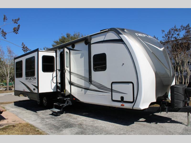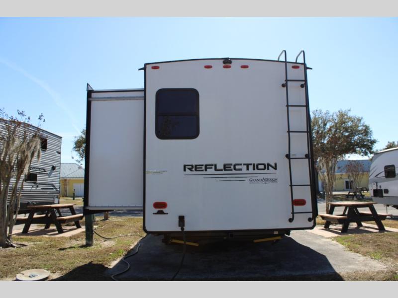 With any Reflection travel trailer by Grand Design, you will have a solar panel for off-grid camping and a 50 amp charge controller and inverter prep, a Universal All-In-One Docking Station, unobstructed pass-through storage, and nitrogen filled radial tires. Some other top features include the 30" stainless steel microwave, the maximum 7-foot headroom, and the ductless heating system with no vents in the floor to collect debris. Each is constructed of gel coat exterior sidewalls, residential 5" truss rafters, walk-on roof decking, a fiberglass and radiant foil roof and front cap insulation plus laminated aluminum framed side walls, roof and end walls in slide rooms. Choose luxury, value, and towability over all the others, take home a Reflection of your good taste!