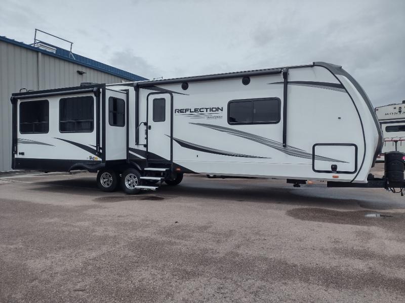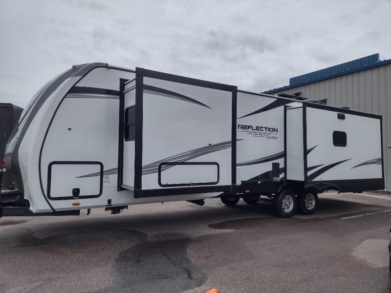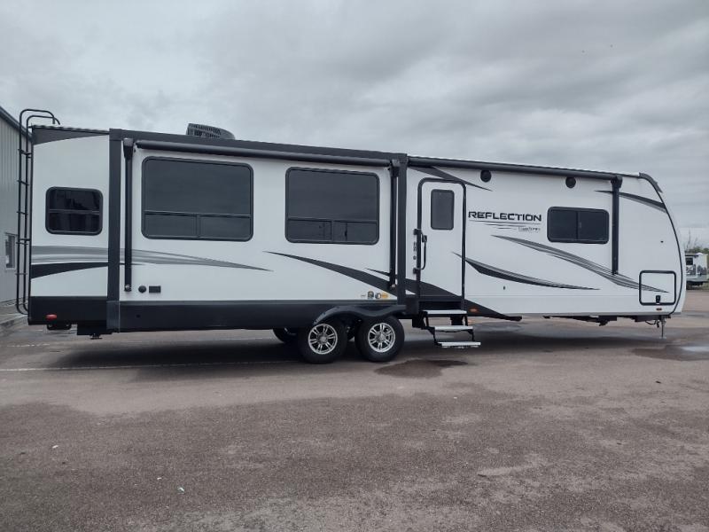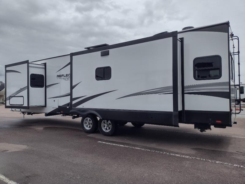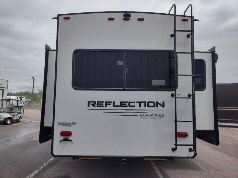 With any Reflection travel trailer by Grand Design, you will have a solar panel for off-grid camping and a 50 amp charge controller and inverter prep, a Universal All-In-One Docking Station, unobstructed pass-through storage, and nitrogen filled radial tires. Some other top features include the 30" stainless steel microwave, the maximum 7-foot headroom, and the ductless heating system with no vents in the floor to collect debris. Each is constructed of gel coat exterior sidewalls, residential 5" truss rafters, walk-on roof decking, a fiberglass and radiant foil roof and front cap insulation plus laminated aluminum framed side walls, roof and end walls in slide rooms. Choose luxury, value, and towability over all the others, take home a Reflection of your good taste!